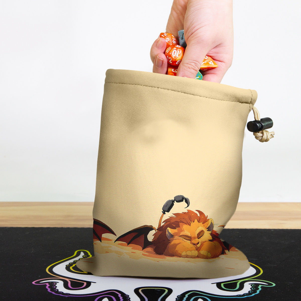 Always gaming on the go? Carry everything you need and more using our specially crafted dice bag. But this bag is designed to hold more than just dice. We make it so you can carry other essential accessories and gear with your dice, including deck boxes, life counters, extra sleeves, and pens. Quality is just as important as quantity, which is why our dice bags are crafted using premium material as well. Featuring a soft inner lining and microfiber on the inside and vibrant pre-designed artwork on the outside, our dice bag has an amazing look and feel to it!