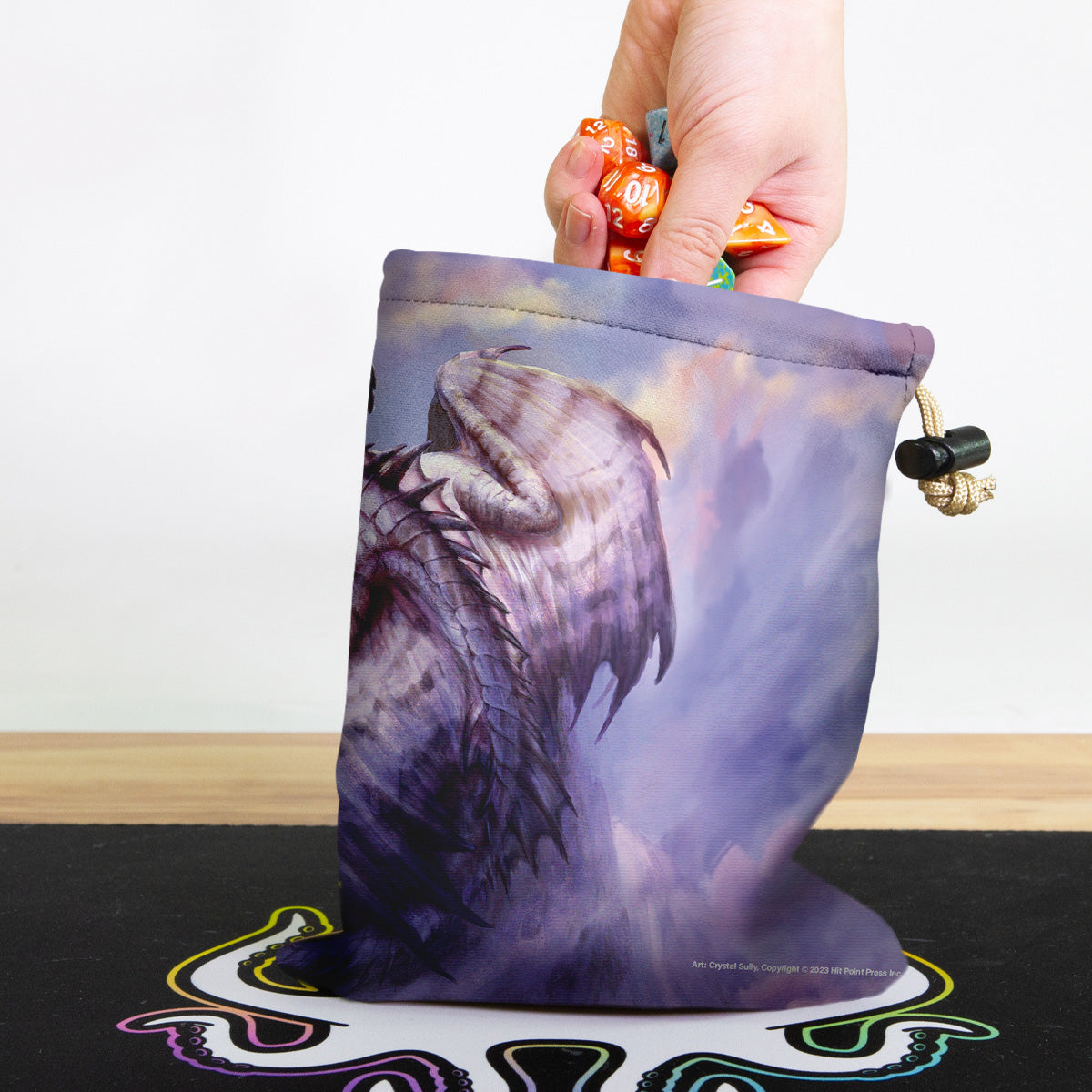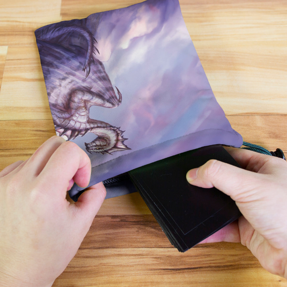 Always gaming on the go? Carry everything you need and more using our specially crafted dice bag. But this bag is designed to hold more than just dice. We make it so you can carry other essential accessories and gear with your dice, including deck boxes, life counters, extra sleeves, and pens. Quality is just as important as quantity, which is why our dice bags are crafted using premium material as well. Featuring a soft inner lining and microfiber on the inside and vibrant pre-designed artwork on the outside, our dice bag has an amazing look and feel to it!