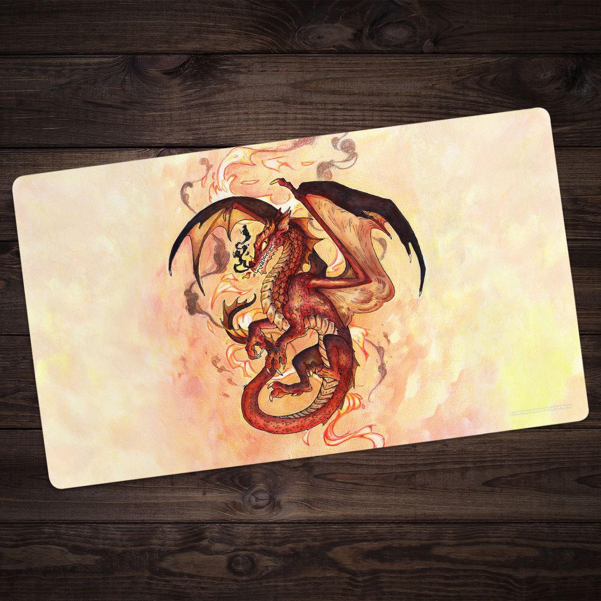 Standard Playmat measures at 24” x 14” inches and is 1/16 of an inch thick. It’s made with a smooth cloth top and strong rubber backing.