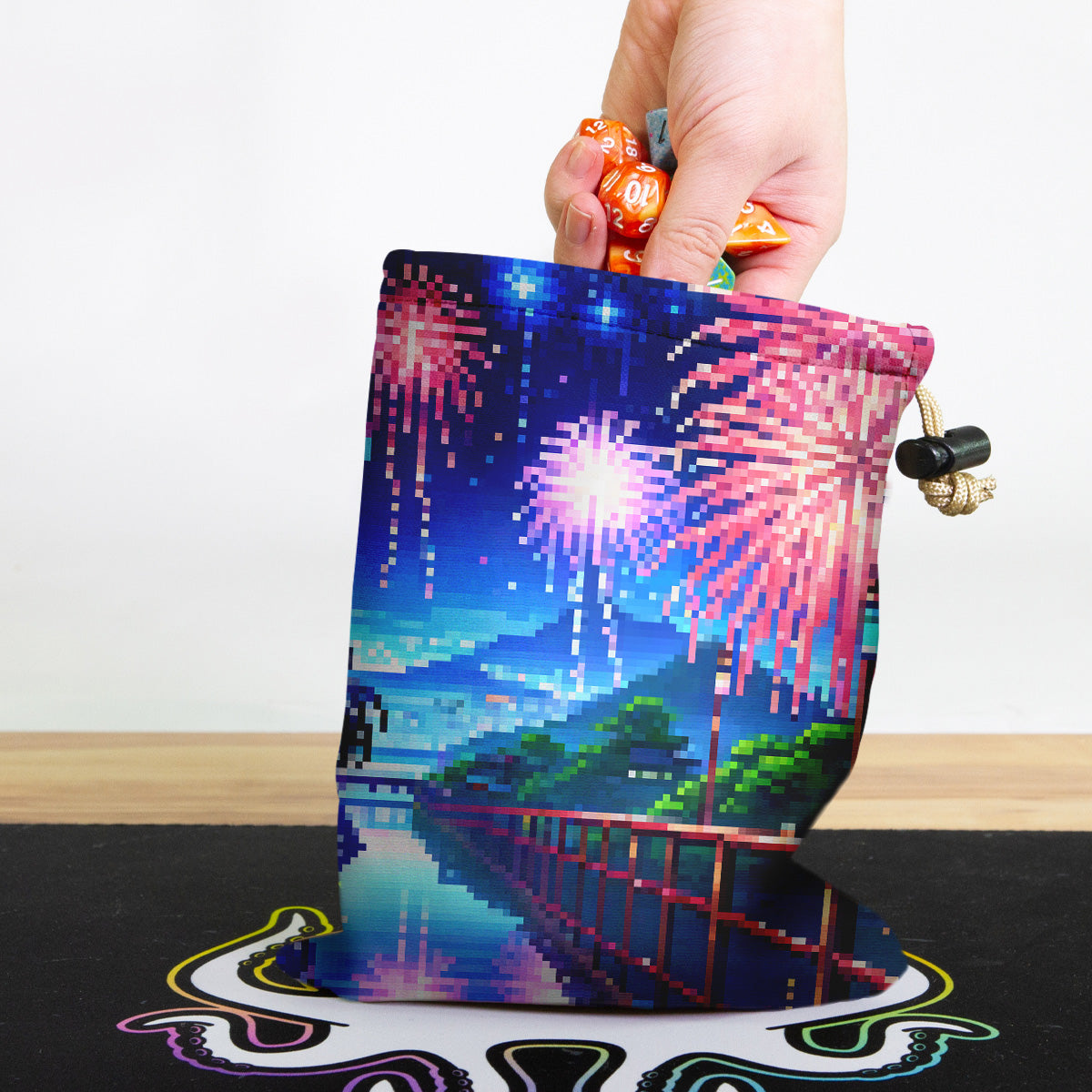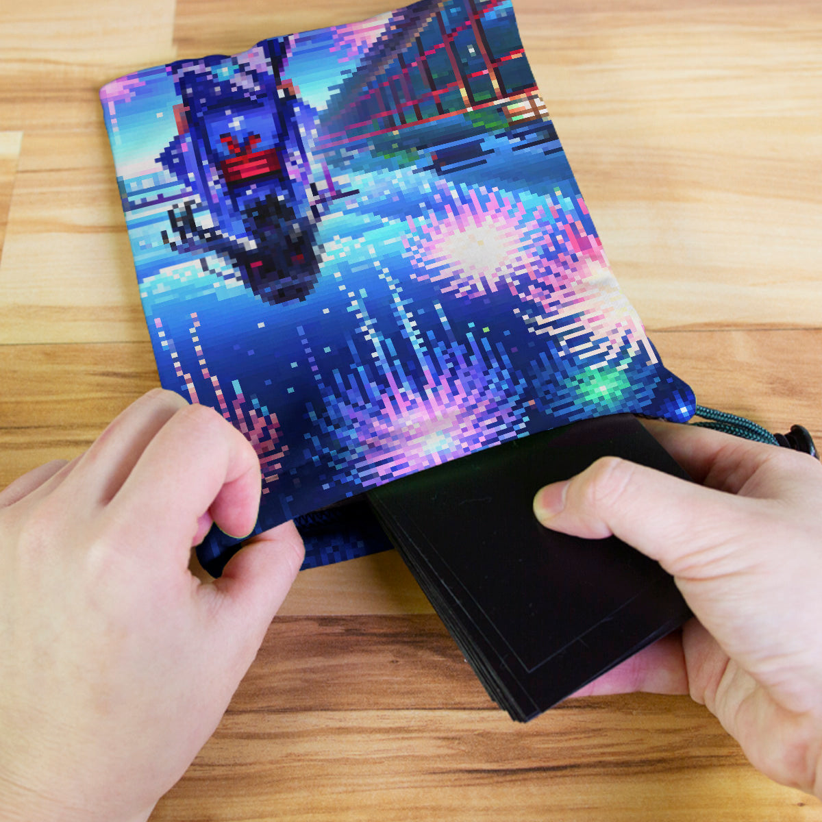 Always gaming on the go? Carry everything you need and more using our specially crafted dice bag. But this bag is designed to hold more than just dice. We make it so you can carry other essential accessories and gear with your dice, including deck boxes, life counters, extra sleeves, and pens. Quality is just as important as quantity, which is why our dice bags are crafted using premium material as well. Featuring a soft inner lining and microfiber on the inside and vibrant pre-designed artwork on the outside, our dice bag has an amazing look and feel to it!