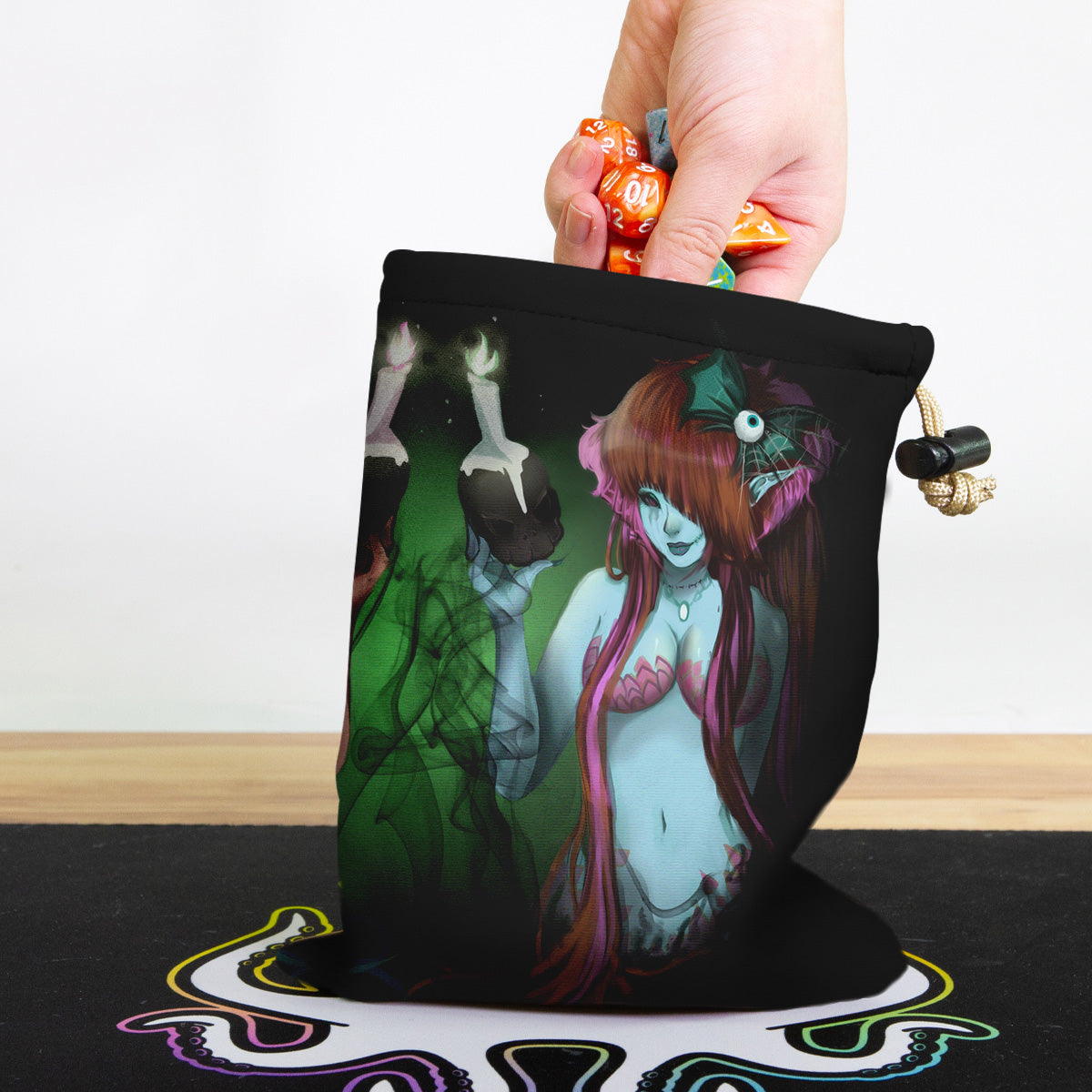 Always gaming on the go? Carry everything you need and more using our specially crafted dice bag. But this bag is designed to hold more than just dice. We make it so you can carry other essential accessories and gear with your dice, including deck boxes, life counters, extra sleeves, and pens. Quality is just as important as quantity, which is why our dice bags are crafted using premium material as well. Featuring a soft inner lining and microfiber on the inside and vibrant pre-designed artwork on the outside, our dice bag has an amazing look and feel to it!