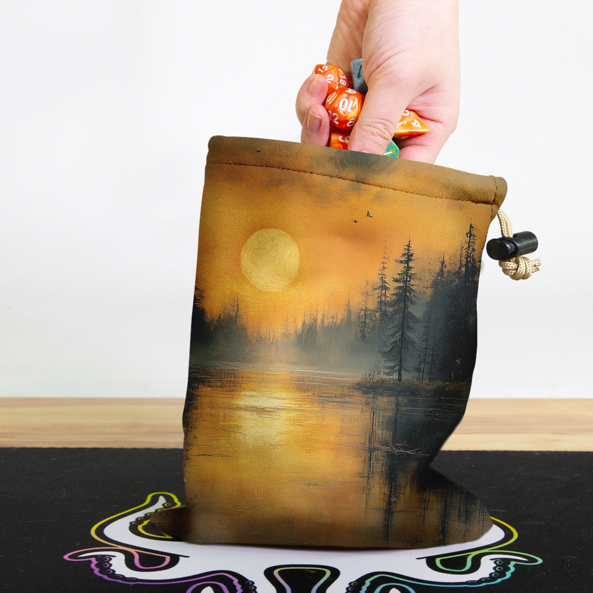 Always gaming on the go? Carry everything you need and more using our specially crafted dice bag. But this bag is designed to hold more than just dice. We make it so you can carry other essential accessories and gear with your dice, including deck boxes, life counters, extra sleeves, and pens. Quality is just as important as quantity, which is why our dice bags are crafted using premium material as well. Featuring a soft inner lining and microfiber on the inside and vibrant pre-designed artwork on the outside, our dice bag has an amazing look and feel to it!
