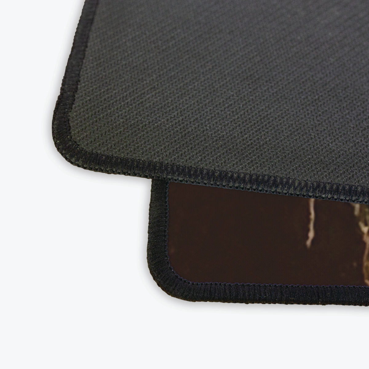 Upgrade your battlestation with one of the biggest and best mousepads available! Our Extended mousepads are handcrafted from the finest, most durable materials that allow you to get the most out of your game. Their extra-long frames allow for bigger and more extreme maneuvers, which means you’ll never run out of room again. These pads also feature a smooth polyester material on the top, rugged stitches on the edges and strong rubber backing on the bottom. United, these materials create a mousepad with a premium look and feel that any gamer will appreciate. You haven’t had a true gaming experience until you’ve played on one of these magnificent mousepads! Furthermore, the stitched edging (available in black on the 35” x 16” and white on the 48” x 24” and 36" x 18") not only looks great, but is ideal for keeping your pad free of fray each time you play. (Reminder: The black stitched edging is only available for the 35”x16” mousepad. 48” x 24” and 36" x 18" mousepads have white stitched edging that bleeds into the edge of the artwork.)