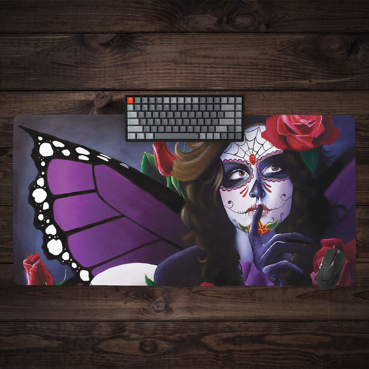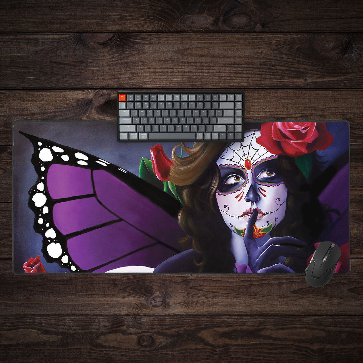 Sugar Skull Rose Garden Extended Mousepad