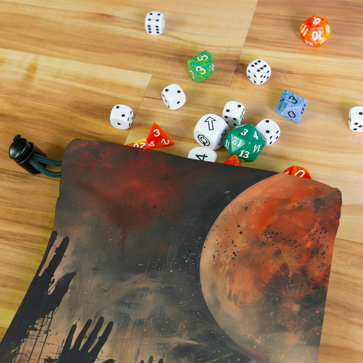 Always gaming on the go? Carry everything you need and more using our specially crafted dice bag. But this bag is designed to hold more than just dice. We make it so you can carry other essential accessories and gear with your dice, including deck boxes, life counters, extra sleeves, and pens. Quality is just as important as quantity, which is why our dice bags are crafted using premium material as well. Featuring a soft inner lining and microfiber on the inside and vibrant pre-designed artwork on the outside, our dice bag has an amazing look and feel to it!