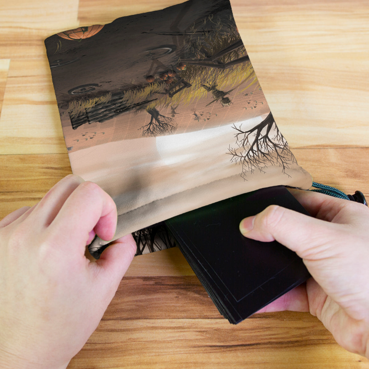 Always gaming on the go? Carry everything you need and more using our specially crafted dice bag. But this bag is designed to hold more than just dice. We make it so you can carry other essential accessories and gear with your dice, including deck boxes, life counters, extra sleeves, and pens. Quality is just as important as quantity, which is why our dice bags are crafted using premium material as well. Featuring a soft inner lining and microfiber on the inside and vibrant pre-designed artwork on the outside, our dice bag has an amazing look and feel to it!
