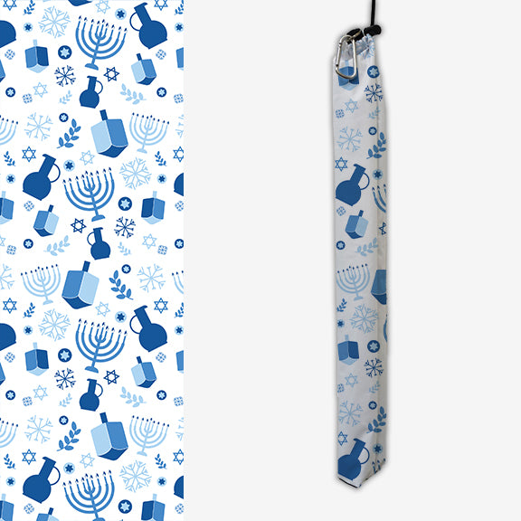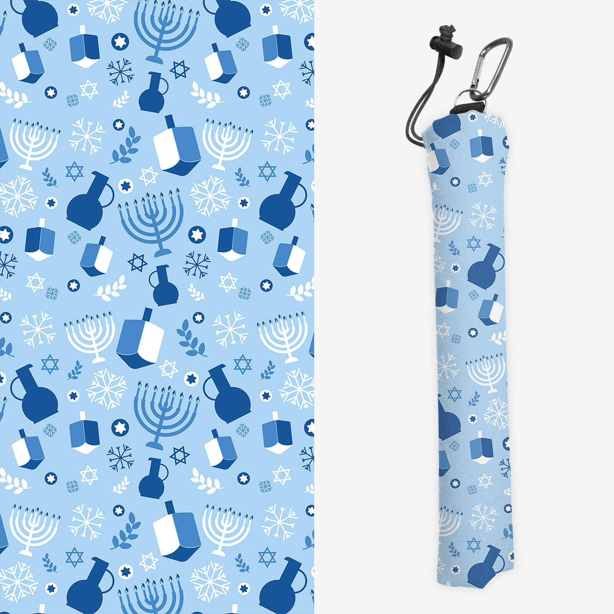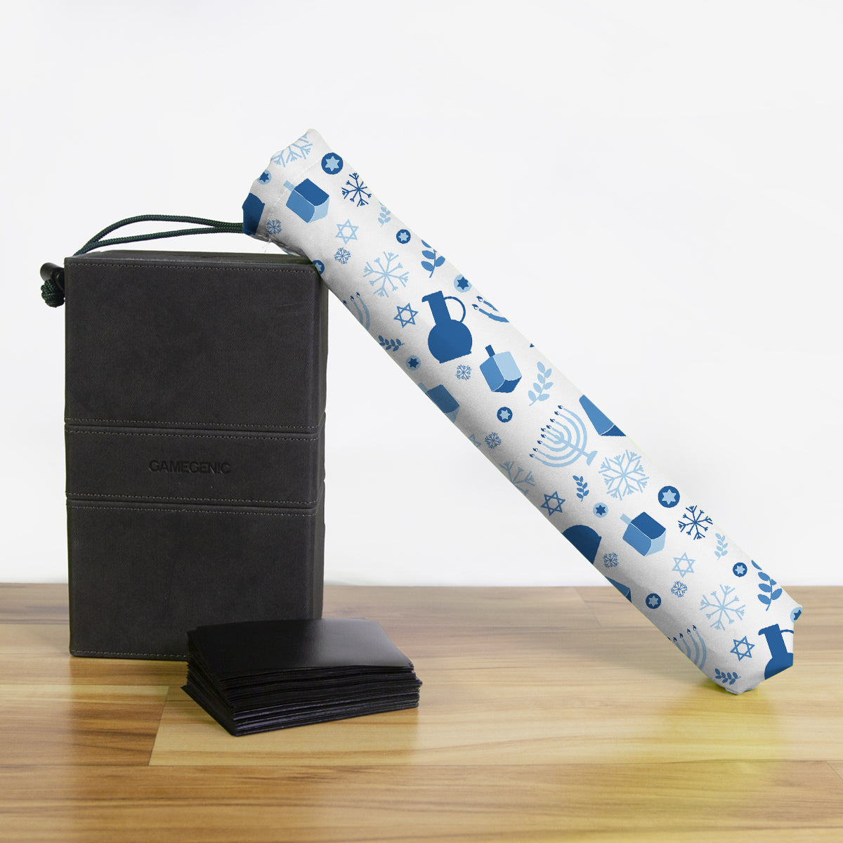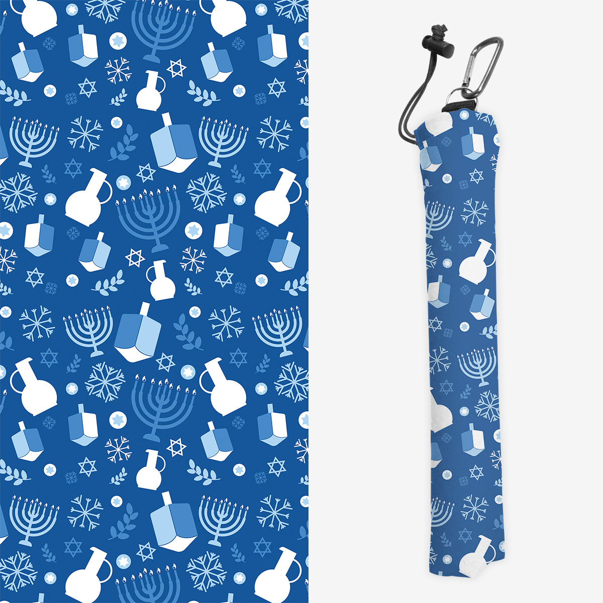 Playmat Bags are specifically designed to hold your mats in style. They are large enough to carry up to two mats. They are coated to be water resistant and include a strap with carabiner for carrying on your backpack. Our bags are hand made in house, and to order. A design that is vertical or patterned would be best for this type of product.