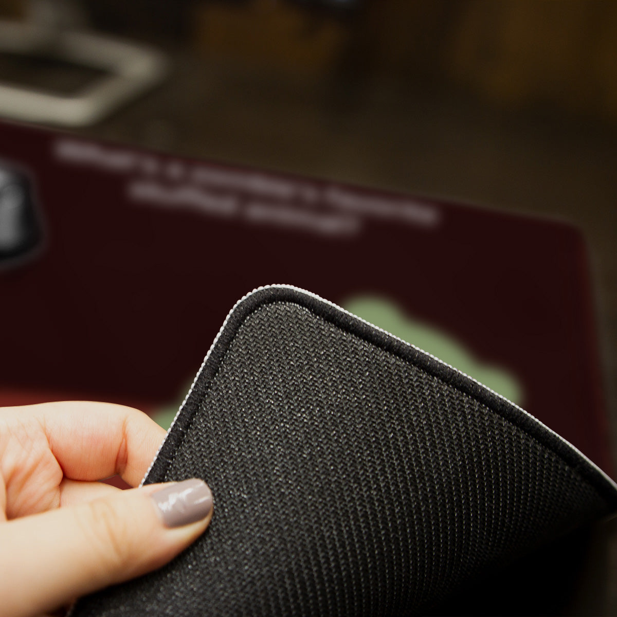 Need a new mousepad that features quality craftsmanship and creativity? Then you’ve definitely come to the right place. Our mousepads are made in-house with premium materials and unique artwork that give your battlestation the supreme look and feel that it deserves. The top is made from sleek polyester, which enables faster, more precise mouse movements. This enhanced speed and precision come in handy whether you’re working or gaming. On the bottom, there’s a strong anti-slip rubber backing that holds a nice, tight grip on your desk while you’re doing your thing. The action and traction this pad provides give you a better overall experience in completing daily tasks, deadlines, and missions of all kinds. And because we’ve added more sizing options to it, you no longer have to worry about running out of room at the worst moments either. The sizes are Classic, Large, and XL. The Classic mousepad has unstitched edges. However, the Large mousepad does include stitched edging, while the XL mousepad has both a stitched or unstitched edging option available. You can see the approximate measurements of all those sizes in the details below. We think you’ll be impressed…if you aren’t already!
