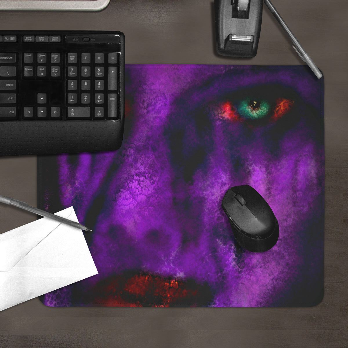 Need a new mousepad that features quality craftsmanship and creativity? Then you’ve definitely come to the right place. Our mousepads are made in-house with premium materials and unique artwork that give your battlestation the supreme look and feel that it deserves. The top is made from sleek polyester, which enables faster, more precise mouse movements. This enhanced speed and precision come in handy whether you’re working or gaming. On the bottom, there’s a strong anti-slip rubber backing that holds a nice, tight grip on your desk while you’re doing your thing. The action and traction this pad provides give you a better overall experience in completing daily tasks, deadlines, and missions of all kinds. And because we’ve added more sizing options to it, you no longer have to worry about running out of room at the worst moments either. The sizes are Classic, Large, and XL. The Classic mousepad has unstitched edges. However, the Large mousepad does include stitched edging, while the XL mousepad has both a stitched or unstitched edging option available. You can see the approximate measurements of all those sizes in the details below. We think you’ll be impressed…if you aren’t already!