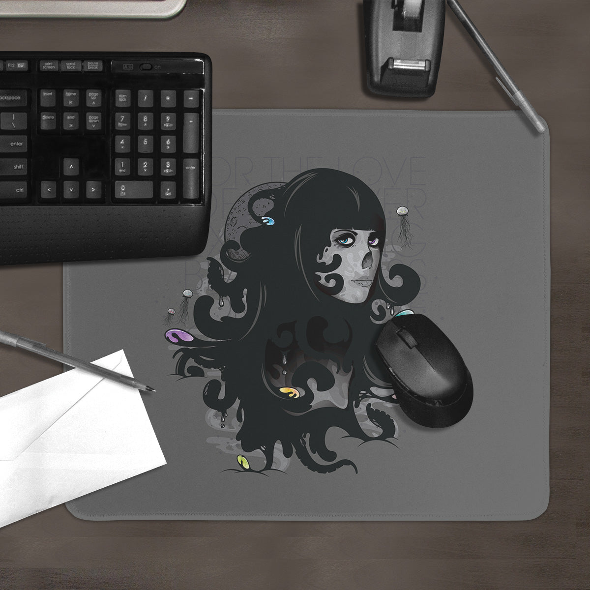 Need a new mousepad that features quality craftsmanship and creativity? Then you’ve definitely come to the right place. Our mousepads are made in-house with premium materials and unique artwork that give your battlestation the supreme look and feel that it deserves. The top is made from sleek polyester, which enables faster, more precise mouse movements. This enhanced speed and precision come in handy whether you’re working or gaming. On the bottom, there’s a strong anti-slip rubber backing that holds a nice, tight grip on your desk while you’re doing your thing. The action and traction this pad provides give you a better overall experience in completing daily tasks, deadlines, and missions of all kinds. And because we’ve added more sizing options to it, you no longer have to worry about running out of room at the worst moments either. The sizes are Classic, Large, and XL. The Classic mousepad has unstitched edges. However, the Large mousepad does include stitched edging, while the XL mousepad has both a stitched or unstitched edging option available. You can see the approximate measurements of all those sizes in the details below. We think you’ll be impressed…if you aren’t already!