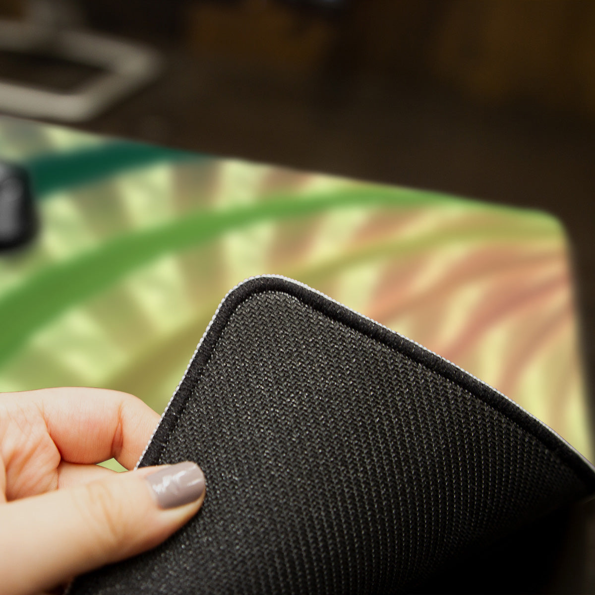 Need a new mousepad that features quality craftsmanship and creativity? Then you’ve definitely come to the right place. Our mousepads are made in-house with premium materials and unique artwork that give your battlestation the supreme look and feel that it deserves. The top is made from sleek polyester, which enables faster, more precise mouse movements. This enhanced speed and precision come in handy whether you’re working or gaming. On the bottom, there’s a strong anti-slip rubber backing that holds a nice, tight grip on your desk while you’re doing your thing. The action and traction this pad provides give you a better overall experience in completing daily tasks, deadlines, and missions of all kinds. And because we’ve added more sizing options to it, you no longer have to worry about running out of room at the worst moments either. The sizes are Classic, Large, and XL. The Classic mousepad has unstitched edges. However, the Large mousepad does include stitched edging, while the XL mousepad has both a stitched or unstitched edging option available. You can see the approximate measurements of all those sizes in the details below. We think you’ll be impressed…if you aren’t already!