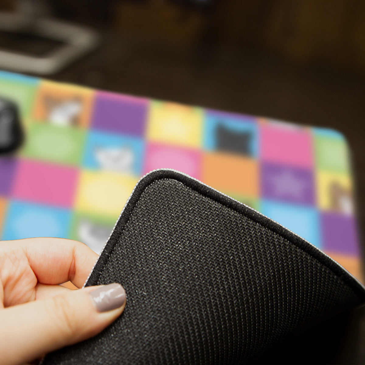 Need a new mousepad that features quality craftsmanship and creativity? Then you’ve definitely come to the right place. Our mousepads are made in-house with premium materials and unique artwork that give your battlestation the supreme look and feel that it deserves. The top is made from sleek polyester, which enables faster, more precise mouse movements. This enhanced speed and precision come in handy whether you’re working or gaming. On the bottom, there’s a strong anti-slip rubber backing that holds a nice, tight grip on your desk while you’re doing your thing. The action and traction this pad provides give you a better overall experience in completing daily tasks, deadlines, and missions of all kinds. And because we’ve added more sizing options to it, you no longer have to worry about running out of room at the worst moments either. The sizes are Classic, Large, and XL. The Classic mousepad has unstitched edges. However, the Large mousepad does include stitched edging, while the XL mousepad has both a stitched or unstitched edging option available. The stitched edging is intended to keep fraying at bay every time you play. You can see the approximate measurements of all those sizes in the details below. We think you’ll be impressed…if you aren’t already!