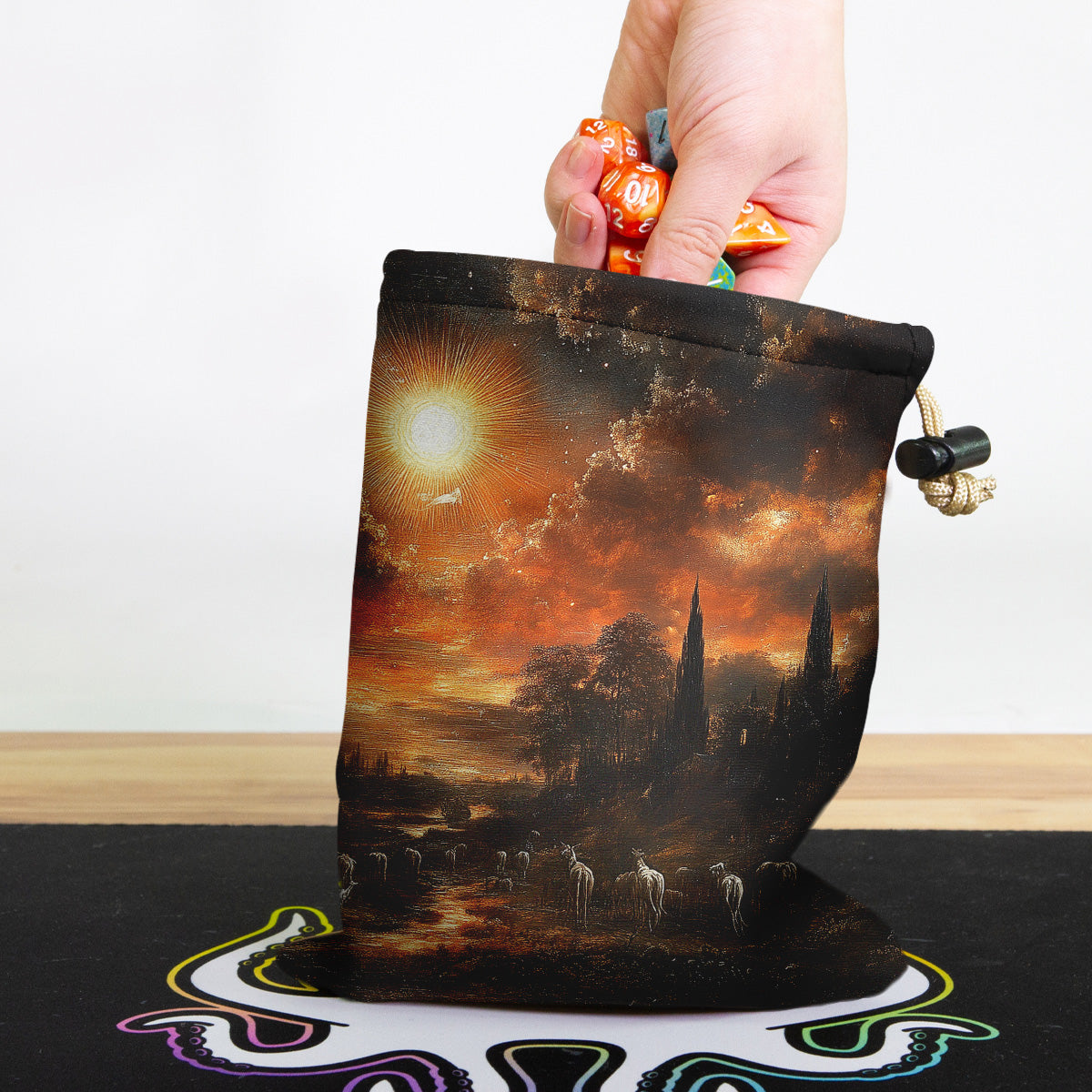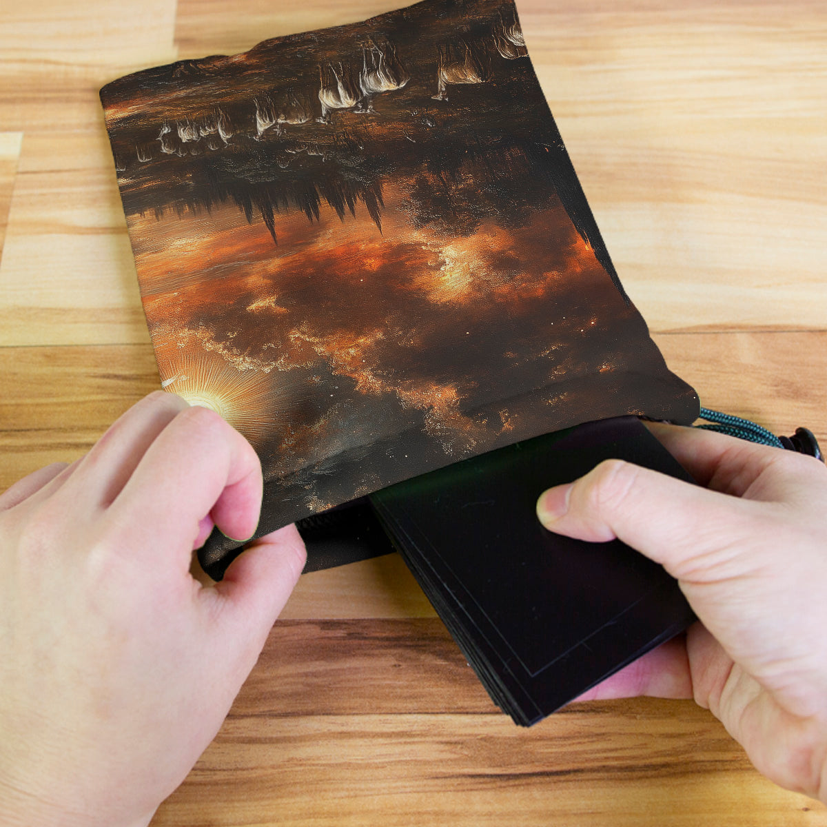 Always gaming on the go? Carry everything you need and more using our specially crafted dice bag. But this bag is designed to hold more than just dice. We make it so you can carry other essential accessories and gear with your dice, including deck boxes, life counters, extra sleeves, and pens. Quality is just as important as quantity, which is why our dice bags are crafted using premium material as well. Featuring a soft inner lining and microfiber on the inside and vibrant pre-designed artwork on the outside, our dice bag has an amazing look and feel to it!