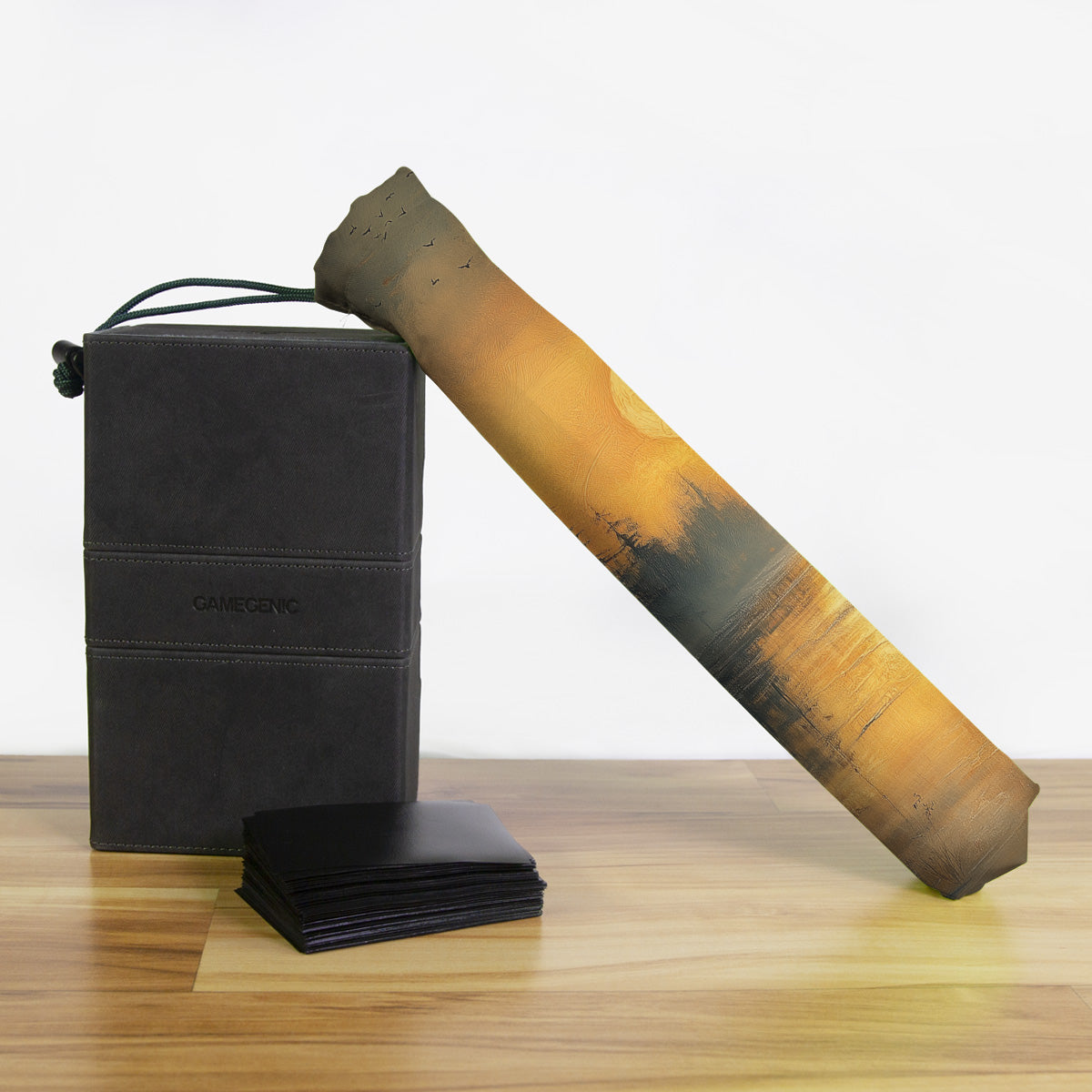 Keep your playmat in pristine condition wherever you go with one of our handcrafted playmat bags. This playmat bag is specifically designed to protect your playmat and can hold two standard sized mats at the same time (in case you need a backup or your friend forgets theirs). Each bag is made in-house and features a water-resistant coating along with a drawstring and carabiner clip for secure carrying. So you can take your game anywhere and in any weather.