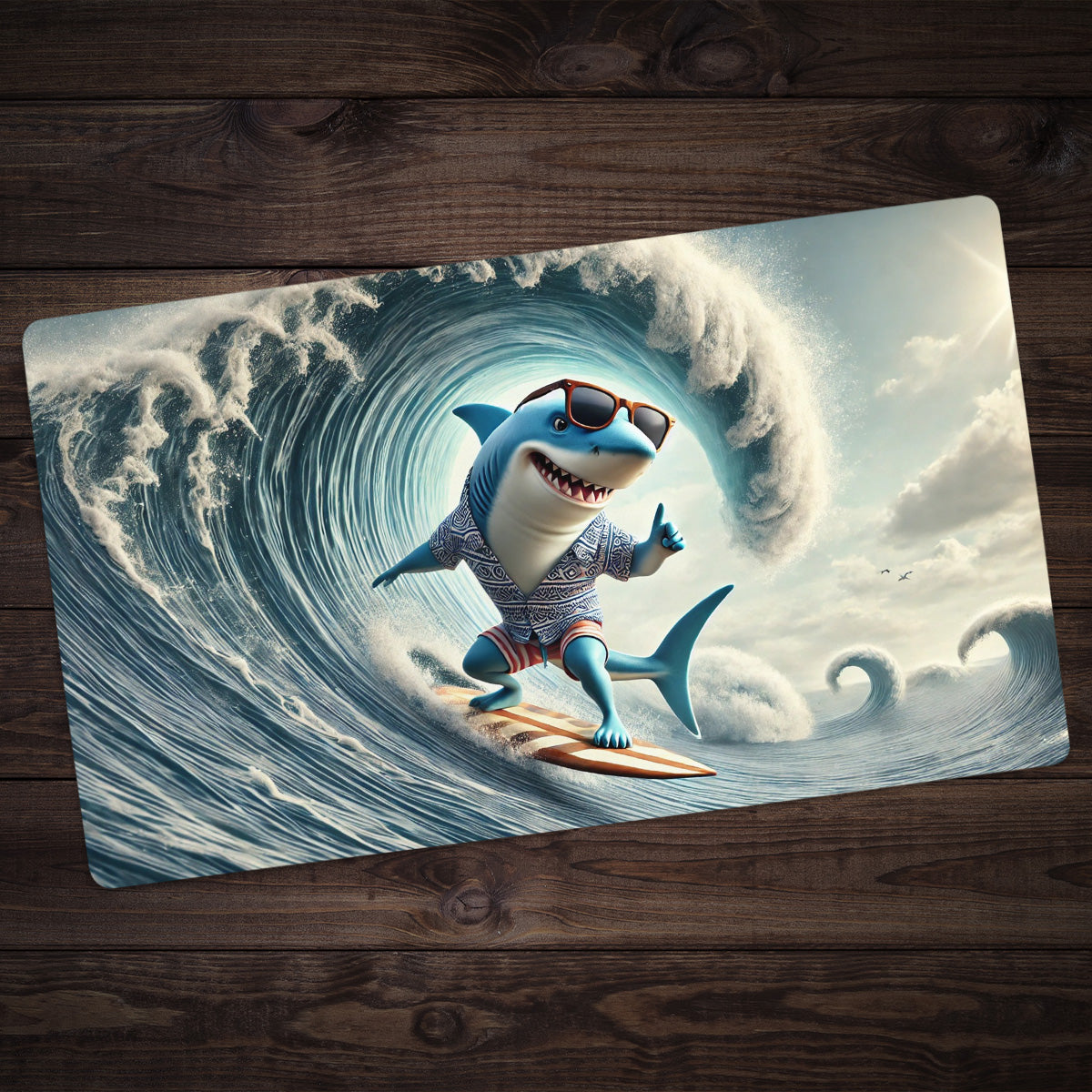Standard Playmat measures at 24” x 14” inches and is 1/16 of an inch thick. It’s made with a smooth cloth top and strong rubber backing.