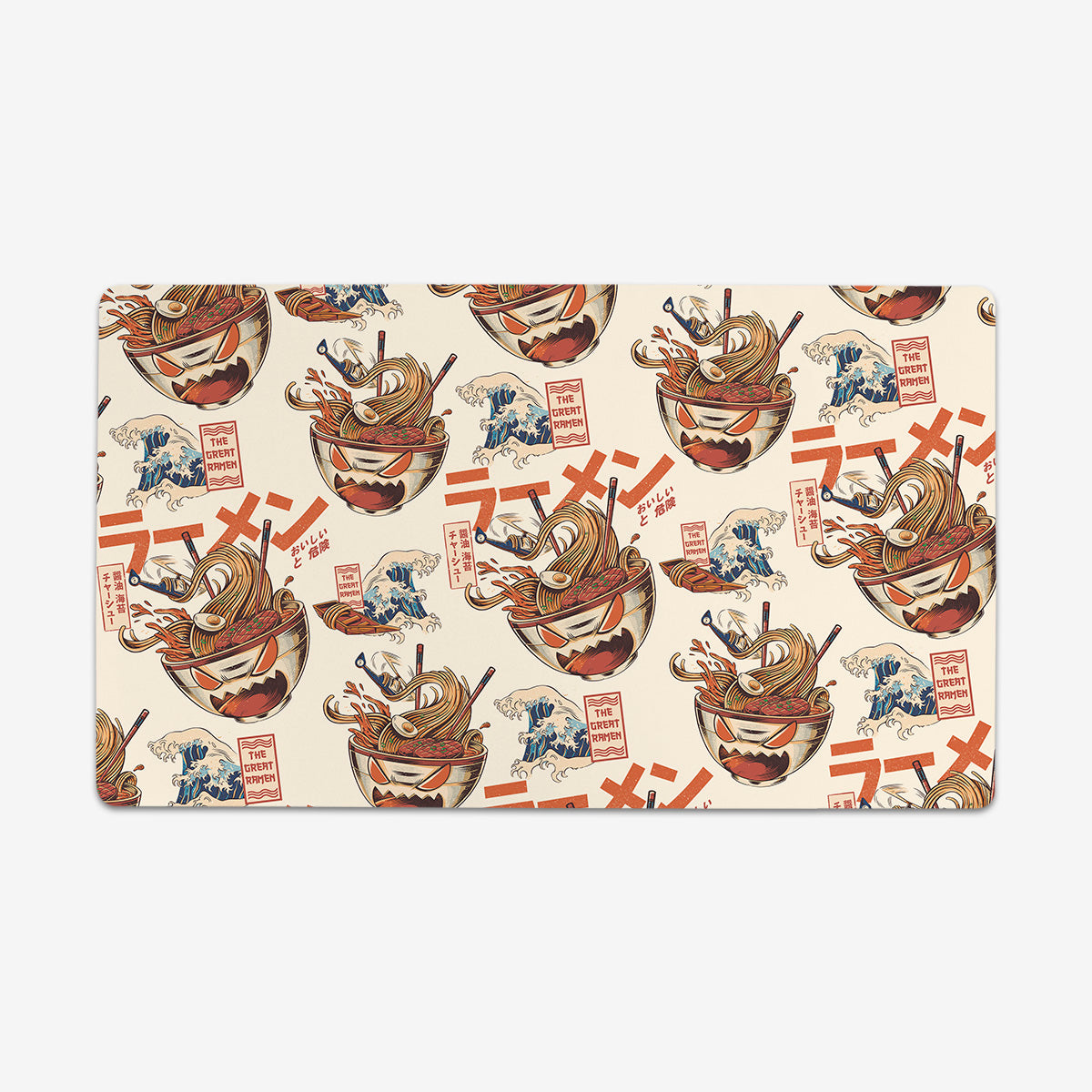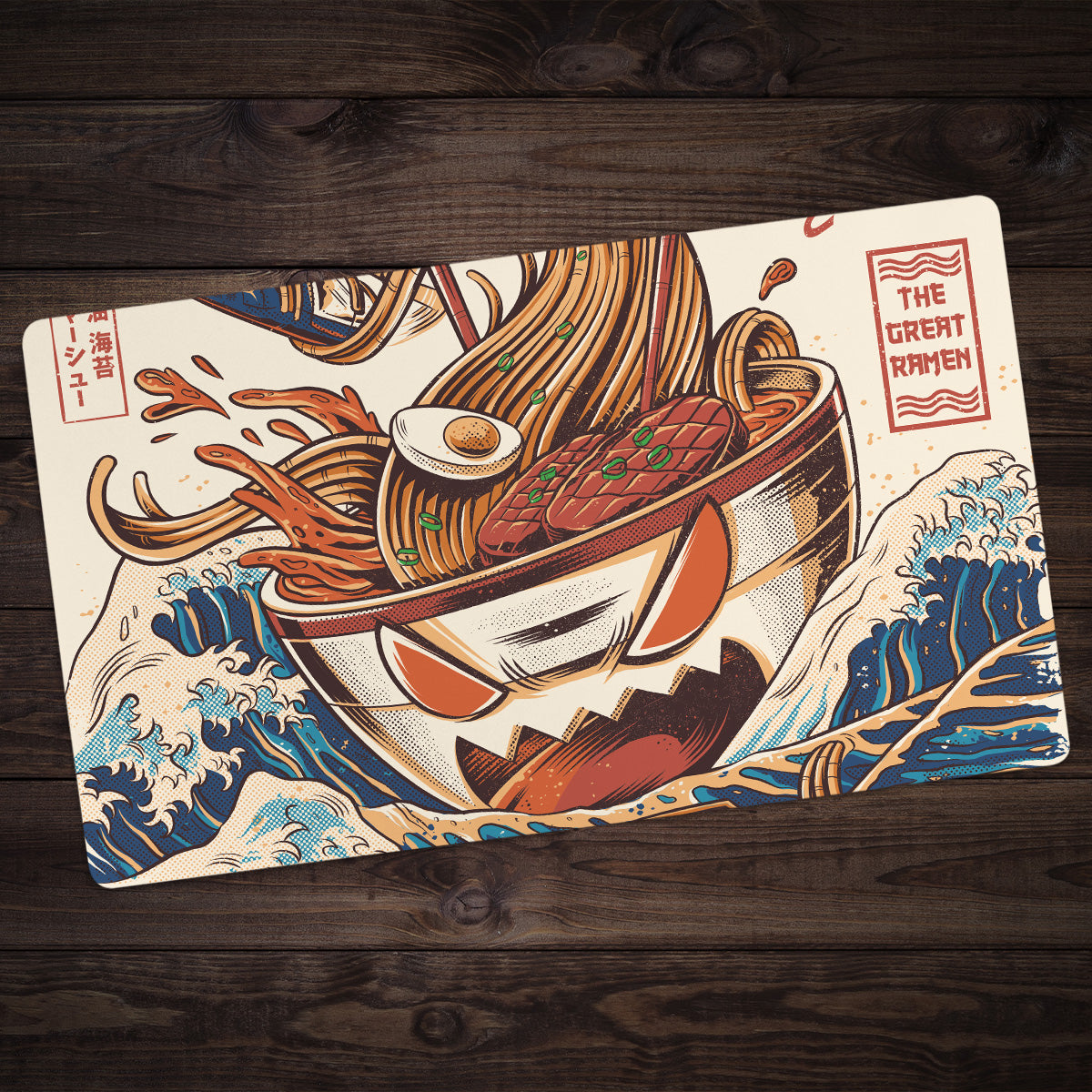 Ditch the ordinary and add a fresh flavor to your collection that is sure to make you drop your chopsticks. Featuring premium materials and amazing art from Ilustrata, Great Ramen is more than just a playmat - it's a tabletop battleground where flavor becomes your ally and strategy intertwines with slurp-worthy satisfaction. The sleek surface ensures smooth card movement while guarding against spills (so you can enjoy your real ramen worry-free). Plus, the non-slip rubber backing keeps your game plan secure, even during the most intense showdowns. Whether you're summoning dragons or savoring your favorite cards, the Great Ramen playmat adds a dash of fun to every match. Now that’s a recipe for victory!