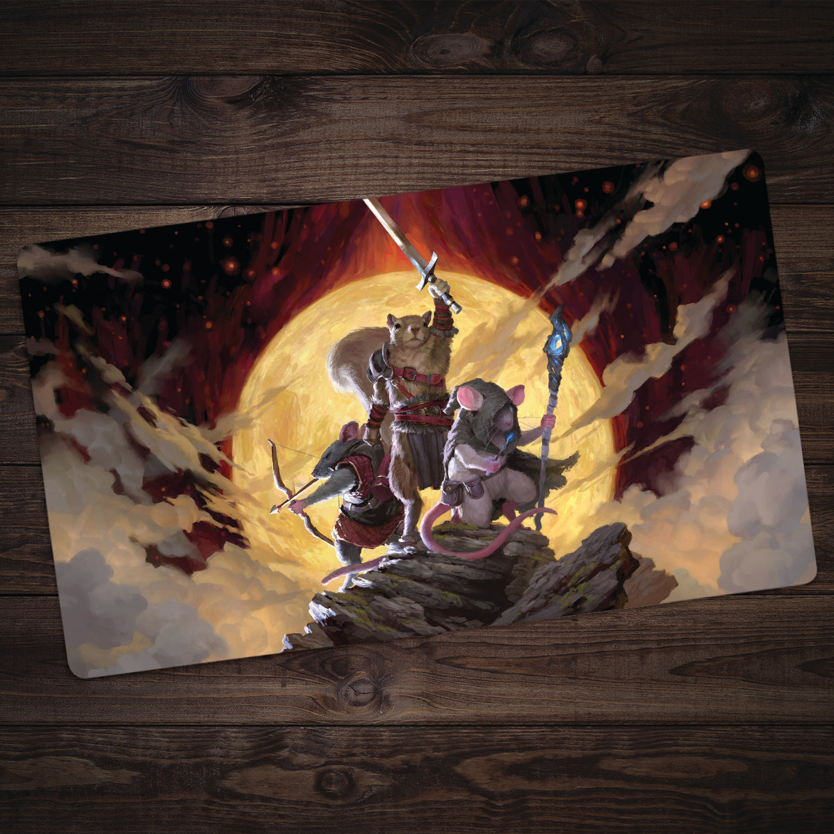 Prepare to embark on a new kind of adventure with Clint Cearley’s Quest playmat design! Much like the valiant creatures it depicts, this mat is made for battle with its premium materials and craftsmanship. There’s a smooth cloth material on the top that creates cleaner, swifter card movements/management during games. No more awkward pickups or having to slide your cards to the edge of the table just to flip them over. This mat is made extra soft as well, which means no harm will come to your cards or sleeves from the table. We’ve also put a strong rubber material on the bottom that is essential to keeping your mat still and straight on every surface. So, even if things start to get a little more intense during the battle, you can rest assured that your mat will stay put. Prepare to play at your peak...every time!