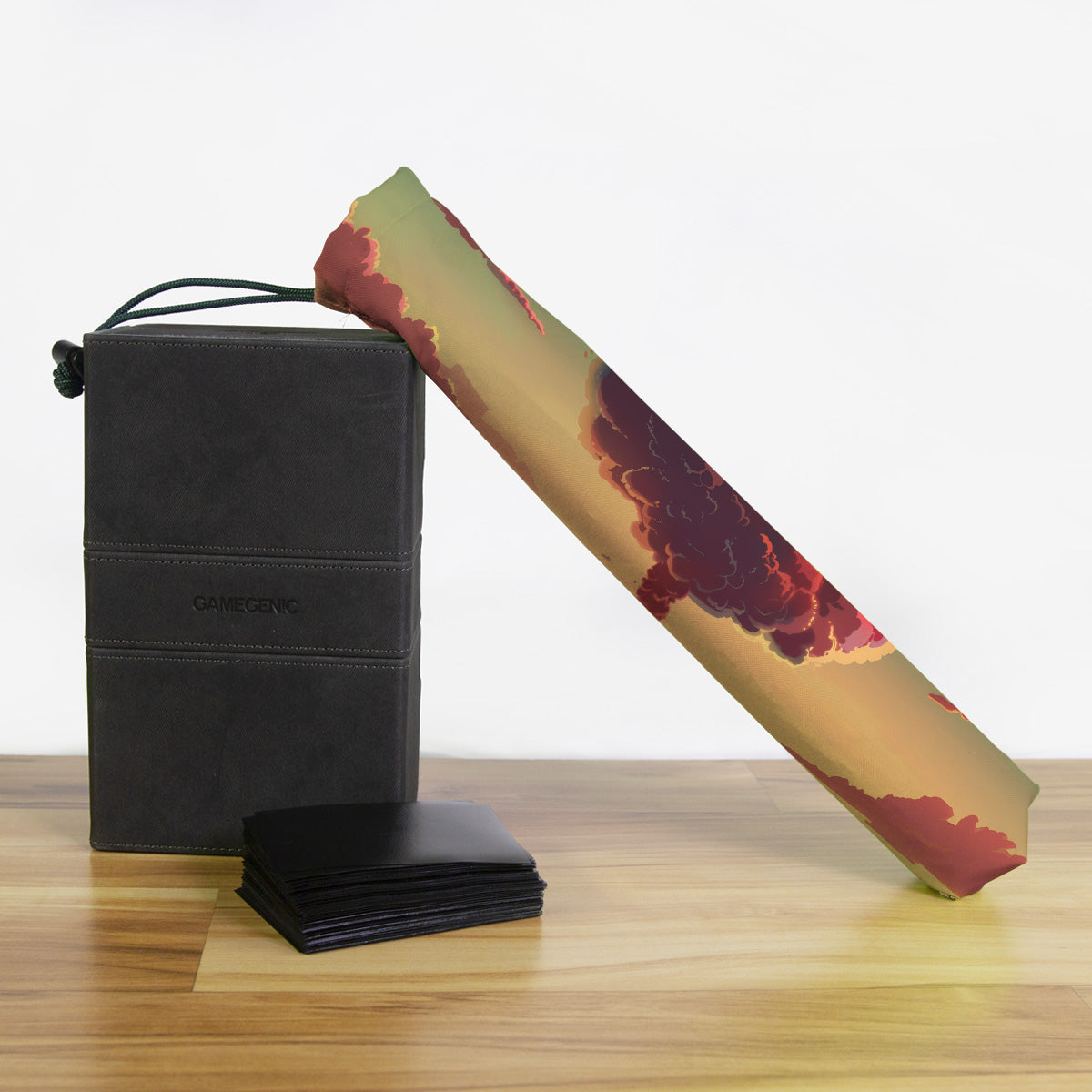 Keep your playmat in pristine condition wherever you go with one of our handcrafted playmat bags. This playmat bag is specifically designed to protect your playmat and can hold two standard sized mats at the same time (in case you need a backup or your friend forgets theirs). Each bag is made in-house and features a water-resistant coating along with a drawstring and carabiner clip for secure carrying. So you can take your game anywhere and in any weather.