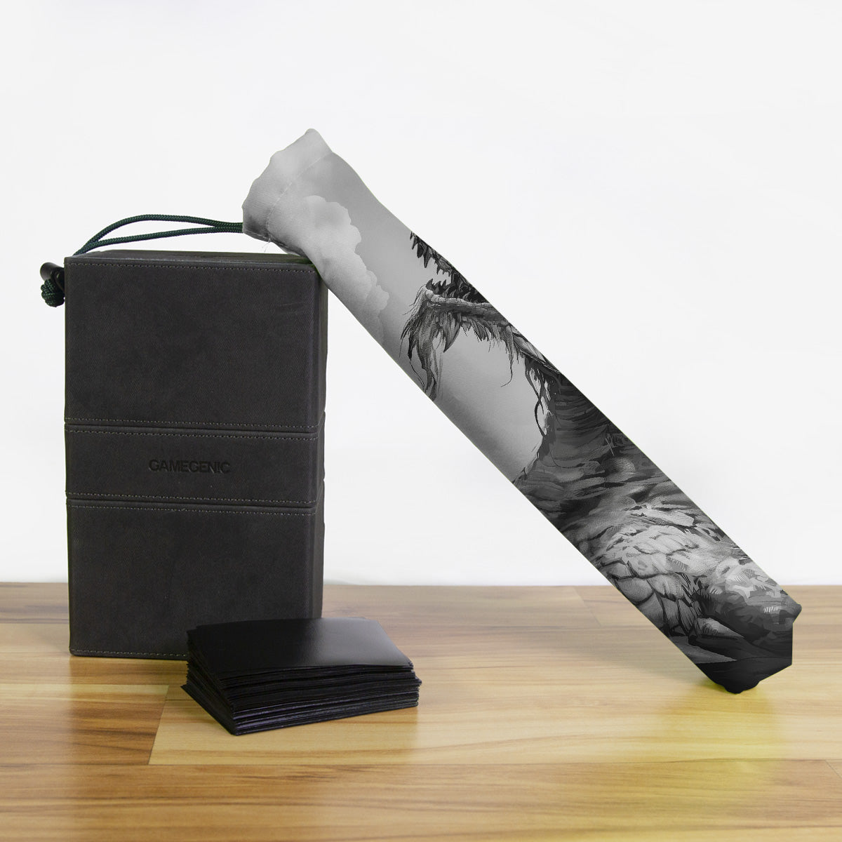 Keep your playmat in pristine condition wherever you go with one of our handcrafted playmat bags. This playmat bag is specifically designed to protect your playmat and can hold two standard sized mats at the same time (in case you need a backup or your friend forgets theirs). Each bag is made in-house and features a water-resistant coating along with a drawstring and carabiner clip for secure carrying. So you can take your game anywhere and in any weather.