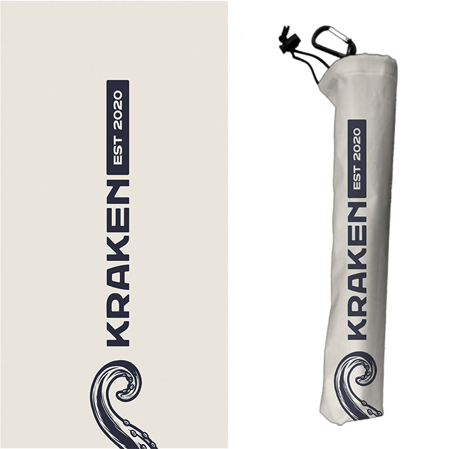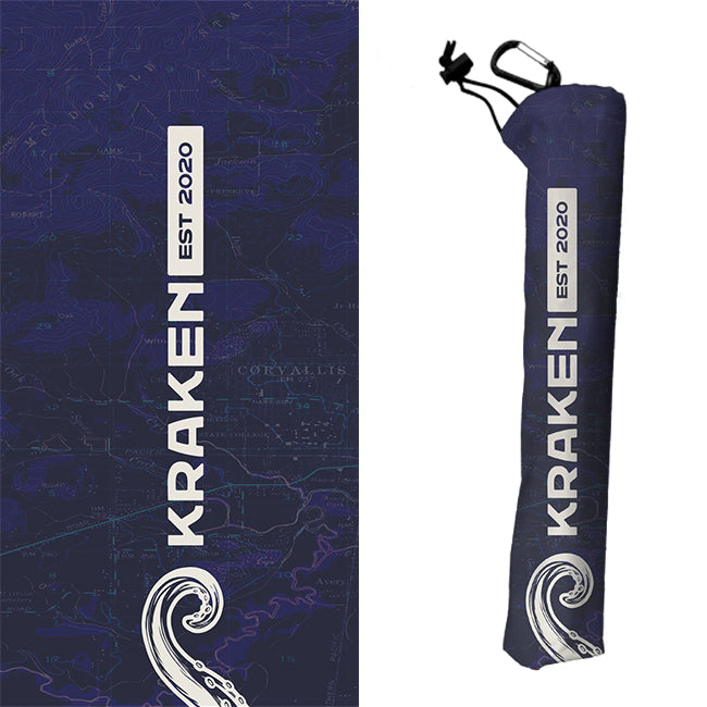 Playmat Bags are specifically designed to hold your mats in style. They are large enough to carry up to two mats. They are coated to be water resistant and include a strap with carabiner for carrying on your backpack. Our bags are hand made in house, and to order. A design that is vertical or patterned would be best for this type of product.