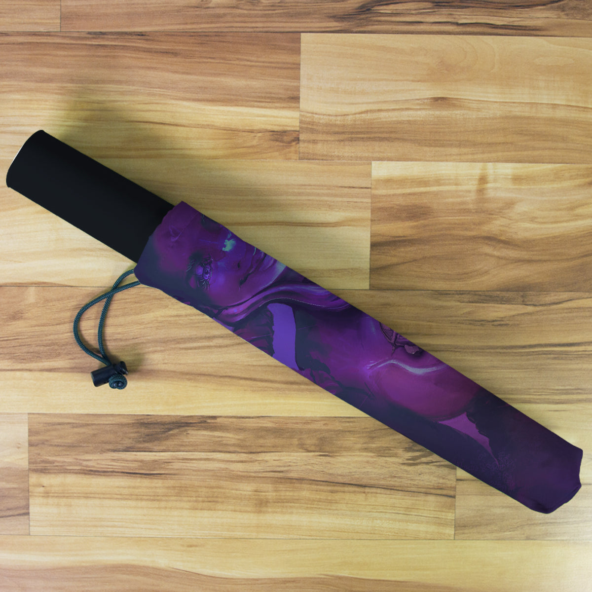 Playmat Bags are specifically designed to hold your mats in style. They are large enough to carry up to two mats. They are coated to be water resistant and include a strap with carabiner for carrying on your backpack. Our bags are hand made in house, and to order. A design that is vertical or patterned would be best for this type of product.