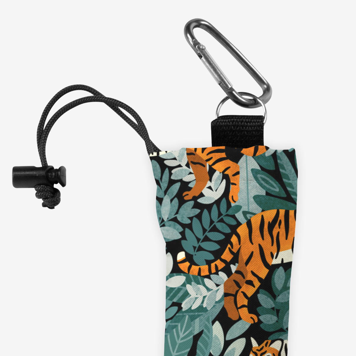 Playmat Bags are specifically designed to hold your mats in style. They are large enough to carry up to two mats. They are coated to be water resistant and include a strap with carabiner for carrying on your backpack. Our bags are hand made in house, and to order. A design that is vertical or patterned would be best for this type of product.