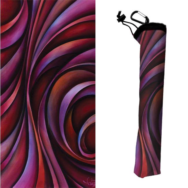 Playmat Bags are specifically designed to hold your mats in style. They are large enough to carry up to two mats. They are coated to be water resistant and include a strap with carabiner for carrying on your backpack. Our bags are hand made in house, and to order. A design that is vertical or patterned would be best for this type of product.