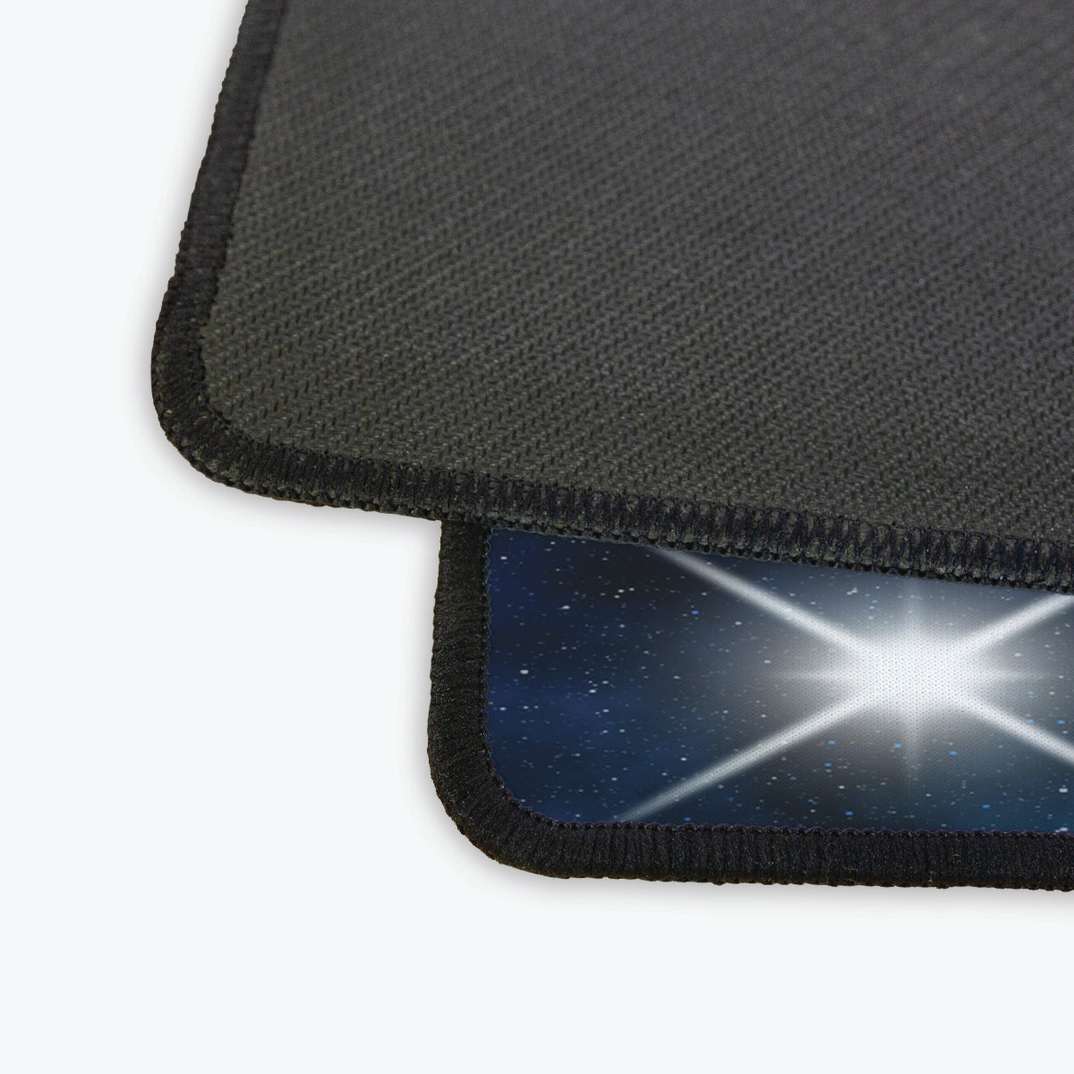 Upgrade your battlestation with one of the biggest and best mousepads available! Our Extended mousepads are handcrafted from the finest, most durable materials that allow you to get the most out of your game. Their extra-long frames allow for bigger and more extreme maneuvers, which means you’ll never run out of room again. These pads also feature a smooth polyester material on the top, rugged stitches on the edges and strong rubber backing on the bottom. United, these materials create a mousepad with a premium look and feel that any gamer will appreciate. You haven’t had a true gaming experience until you’ve played on one of these magnificent mousepads! Furthermore, the stitched edging (available in black on the 35” x 16” and white on the 48” x 24” and 36" x 18") not only looks great, but is ideal for keeping your pad free of fray each time you play. (Reminder: The black stitched edging is only available for the 35”x16” mousepad. 48” x 24” and 36" x 18" mousepads have white stitched edging that bleeds into the edge of the artwork.)