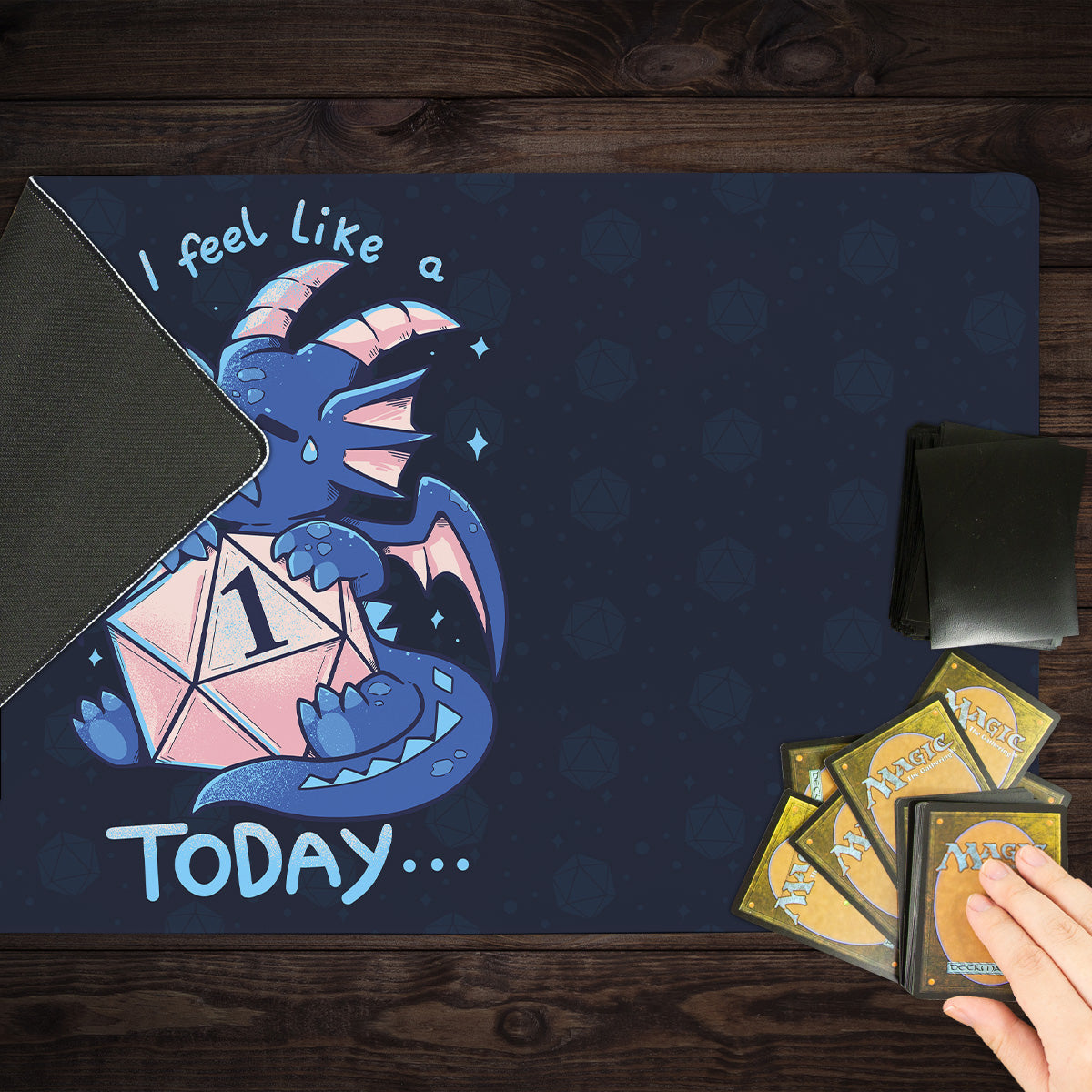 Standard Playmat measures at 24” x 14” inches and is 1/16 of an inch thick. It’s made with a smooth cloth top and strong rubber backing.