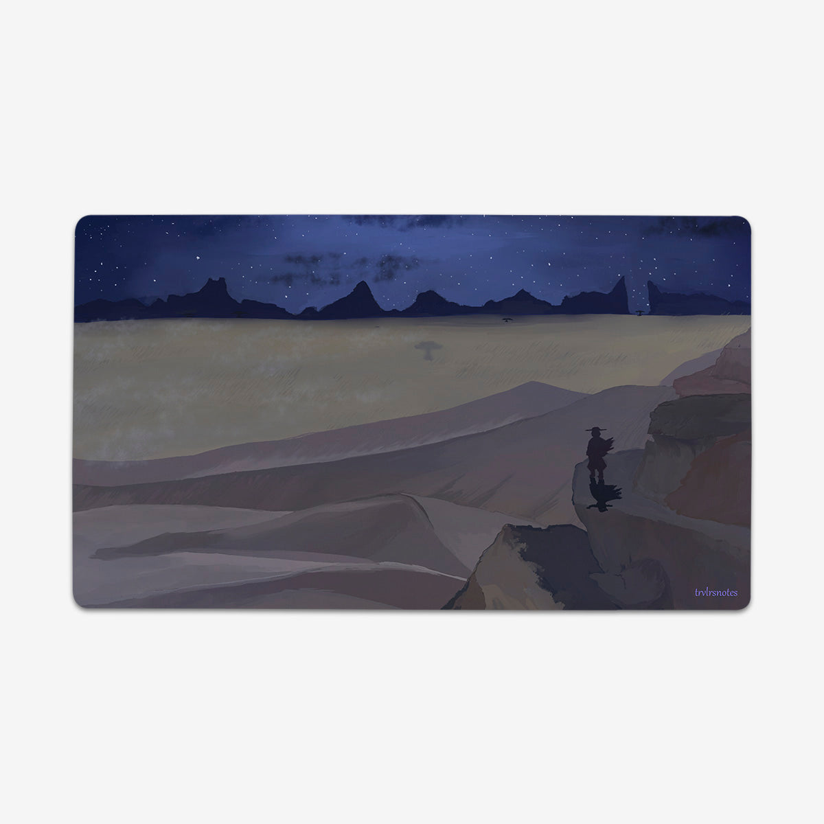 Standard Playmat measures at 24” x 14” inches and is 1/16 of an inch thick. It’s made with a smooth cloth top and strong rubber backing.