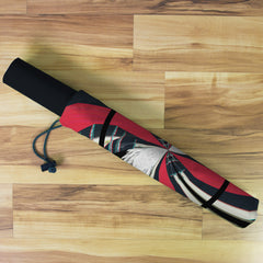 Keep your playmat in pristine condition wherever you go with one of our handcrafted playmat bags. This playmat bag is specifically designed to protect your playmat and can hold two standard sized mats at the same time (in case you need a backup or your friend forgets theirs). Each bag is made in-house and features a water-resistant coating along with a drawstring and carabiner clip for secure carrying. So you can take your game anywhere and in any weather.