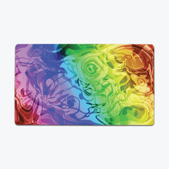 Standard Playmat measures at 24” x 14” inches and is 1/16 of an inch thick. It’s made with a smooth cloth top and strong rubber backing.