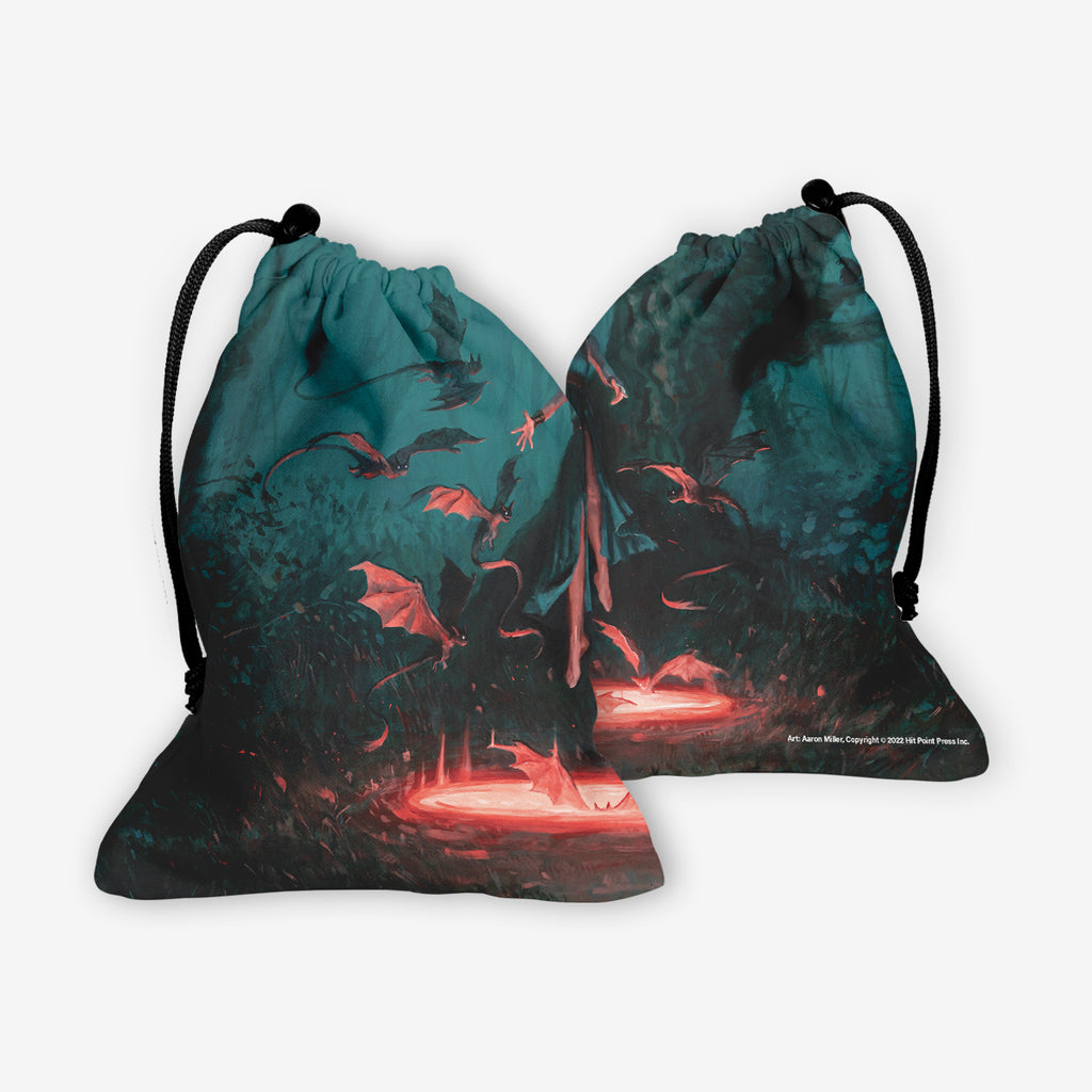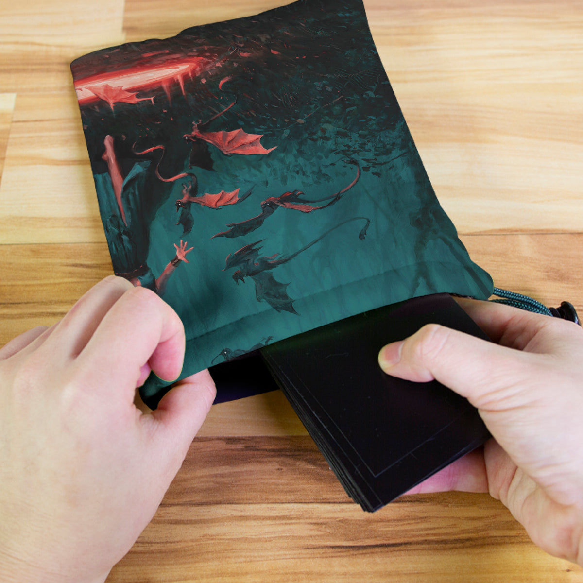 Always gaming on the go? Carry everything you need and more using our specially crafted dice bag. But this bag is designed to hold more than just dice. We make it so you can carry other essential accessories and gear with your dice, including deck boxes, life counters, extra sleeves, and pens. Quality is just as important as quantity, which is why our dice bags are crafted using premium material as well. Featuring a soft inner lining and microfiber on the inside and vibrant pre-designed artwork on the outside, our dice bag has an amazing look and feel to it!