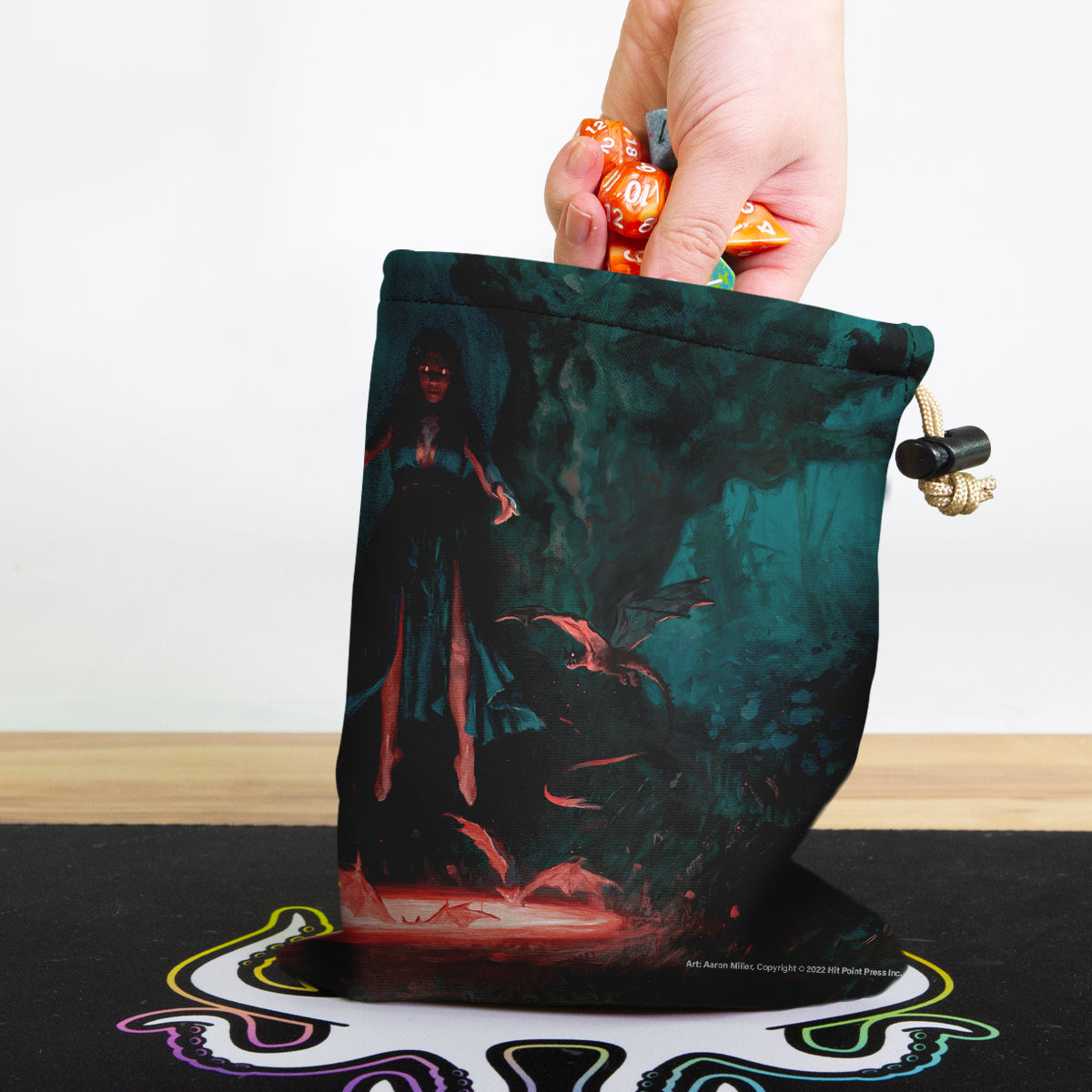 ThingamajigsAlways gaming on the go? Carry everything you need and more using our specially crafted dice bag. But this bag is designed to hold more than just dice. We make it so you can carry other essential accessories and gear with your dice, including deck boxes, life counters, extra sleeves, and pens. Quality is just as important as quantity, which is why our dice bags are crafted using premium material as well. Featuring a soft inner lining and microfiber on the inside and vibrant pre-designed artwork on the outside, our dice bag has an amazing look and feel to it!