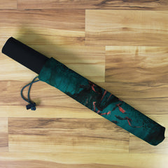 Keep your playmat in pristine condition wherever you go with one of our handcrafted playmat bags. This playmat bag is specifically designed to protect your playmat and can hold two standard sized mats at the same time (in case you need a backup or your friend forgets theirs). Each bag is made in-house and features a water-resistant coating along with a drawstring and carabiner clip for secure carrying. So you can take your game anywhere and in any weather.