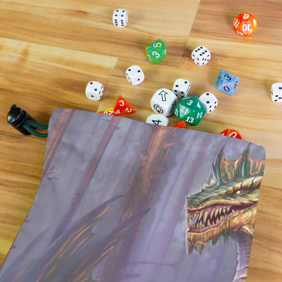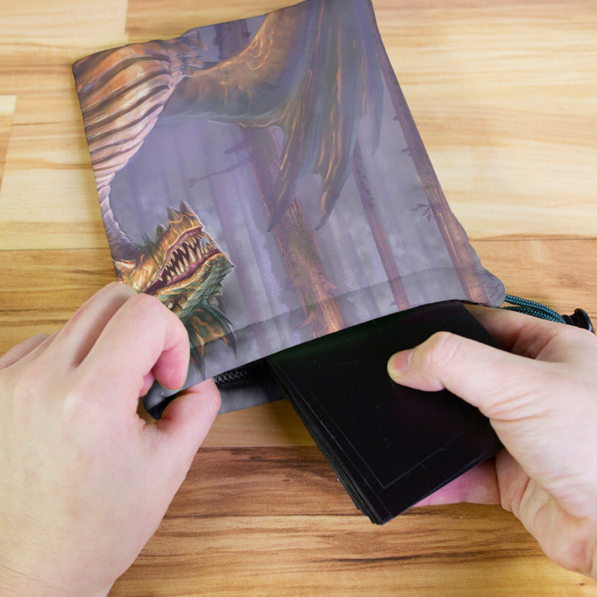 Always gaming on the go? Carry everything you need and more using our specially crafted dice bag. But this bag is designed to hold more than just dice. We make it so you can carry other essential accessories and gear with your dice, including deck boxes, life counters, extra sleeves, and pens. Quality is just as important as quantity, which is why our dice bags are crafted using premium material as well. Featuring a soft inner lining and microfiber on the inside and vibrant pre-designed artwork on the outside, our dice bag has an amazing look and feel to it!