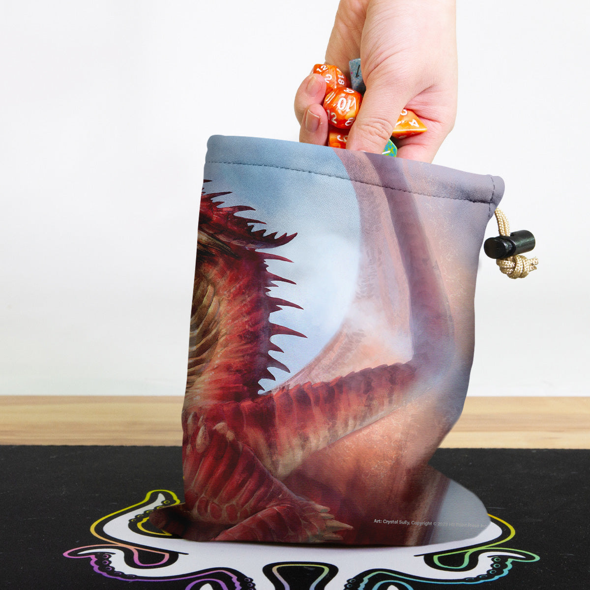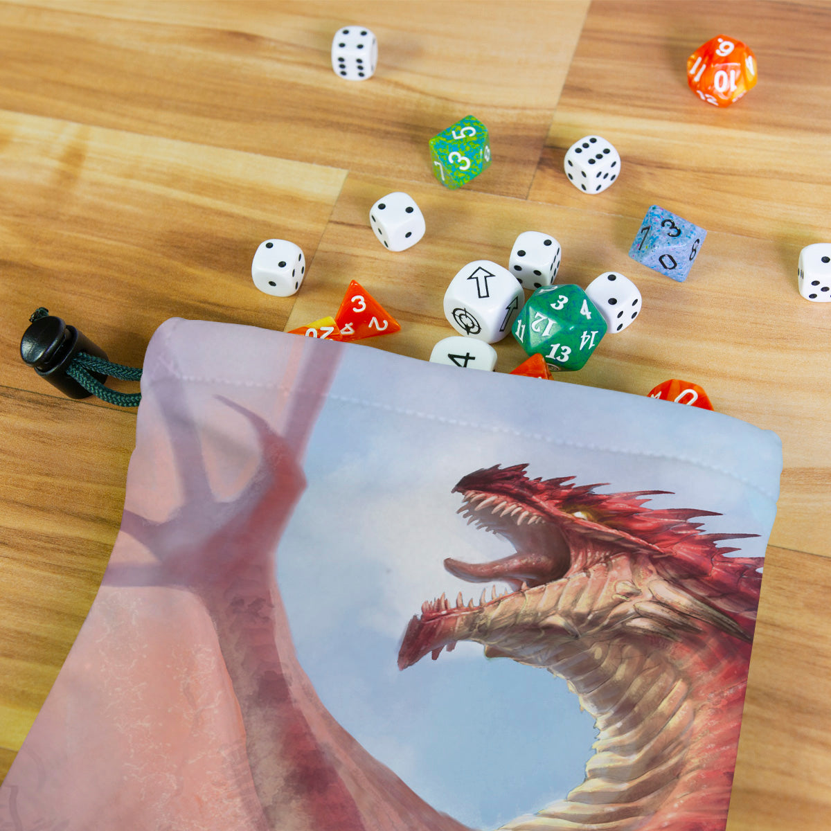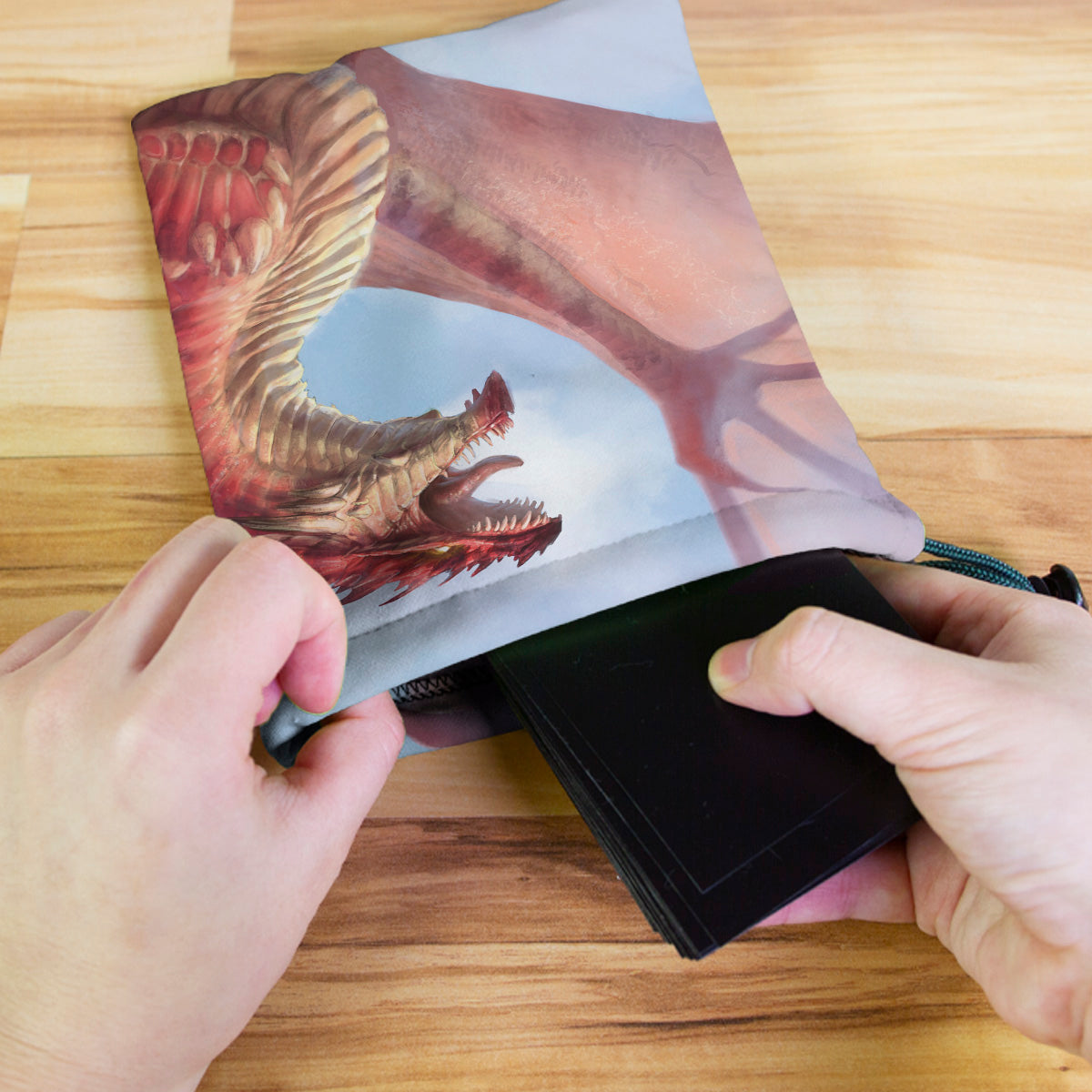 Always gaming on the go? Carry everything you need and more using our specially crafted dice bag. But this bag is designed to hold more than just dice. We make it so you can carry other essential accessories and gear with your dice, including deck boxes, life counters, extra sleeves, and pens. Quality is just as important as quantity, which is why our dice bags are crafted using premium material as well. Featuring a soft inner lining and microfiber on the inside and vibrant pre-designed artwork on the outside, our dice bag has an amazing look and feel to it!