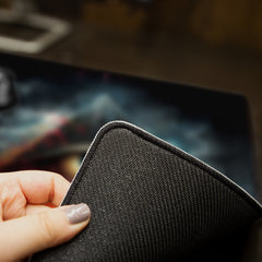 Need a new mousepad that features quality craftsmanship and creativity? Then you’ve definitely come to the right place. Our mousepads are made in-house with premium materials and unique artwork that give your battlestation the supreme look and feel that it deserves. The top is made from sleek polyester, which enables faster, more precise mouse movements. This enhanced speed and precision come in handy whether you’re working or gaming. On the bottom, there’s a strong anti-slip rubber backing that holds a nice, tight grip on your desk while you’re doing your thing. The action and traction this pad provides give you a better overall experience in completing daily tasks, deadlines, and missions of all kinds. And because we’ve added more sizing options to it, you no longer have to worry about running out of room at the worst moments either. The sizes are Classic, Large, and XL. The Classic mousepad has unstitched edges. However, the Large mousepad does include stitched edging, while the XL mousepad has both a stitched or unstitched edging option available. You can see the approximate measurements of all those sizes in the details below. We think you’ll be impressed…if you aren’t already!