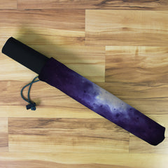 Playmat Bags are specifically designed to hold your mats in style. They are large enough to carry up to two mats. They are coated to be water resistant and include a strap with carabiner for carrying on your backpack. Our bags are hand made in house, and to order. A design that is vertical or patterned would be best for this type of product.