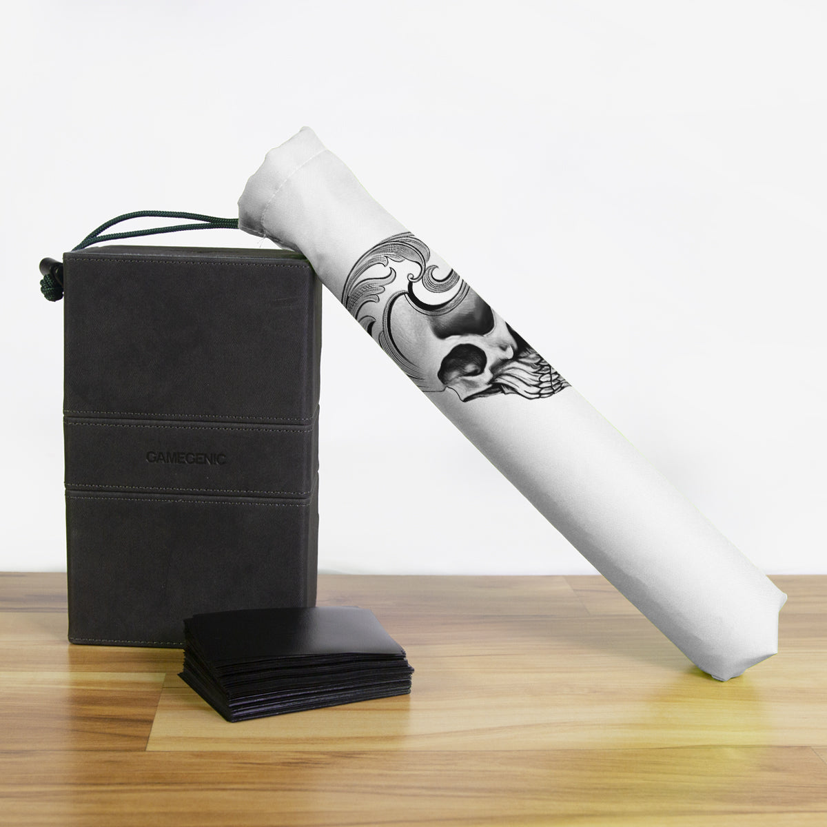 Keep your playmat in pristine condition wherever you go with one of our handcrafted playmat bags. This playmat bag is specifically designed to protect your playmat and can hold two standard sized mats at the same time (in case you need a backup or your friend forgets theirs). Each bag is made in-house and features a water-resistant coating along with a drawstring and carabiner clip for secure carrying. So you can take your game anywhere and in any weather.