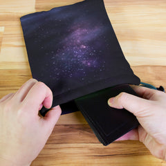 Always gaming on the go? Carry everything you need and more using our specially crafted dice bag. But this bag is designed to hold more than just dice. We make it so you can carry other essential accessories and gear with your dice, including deck boxes, life counters, extra sleeves, and pens. Quality is just as important as quantity, which is why our dice bags are crafted using premium material as well. Featuring a soft inner lining and microfiber on the inside and vibrant pre-designed artwork on the outside, our dice bag has an amazing look and feel to it!