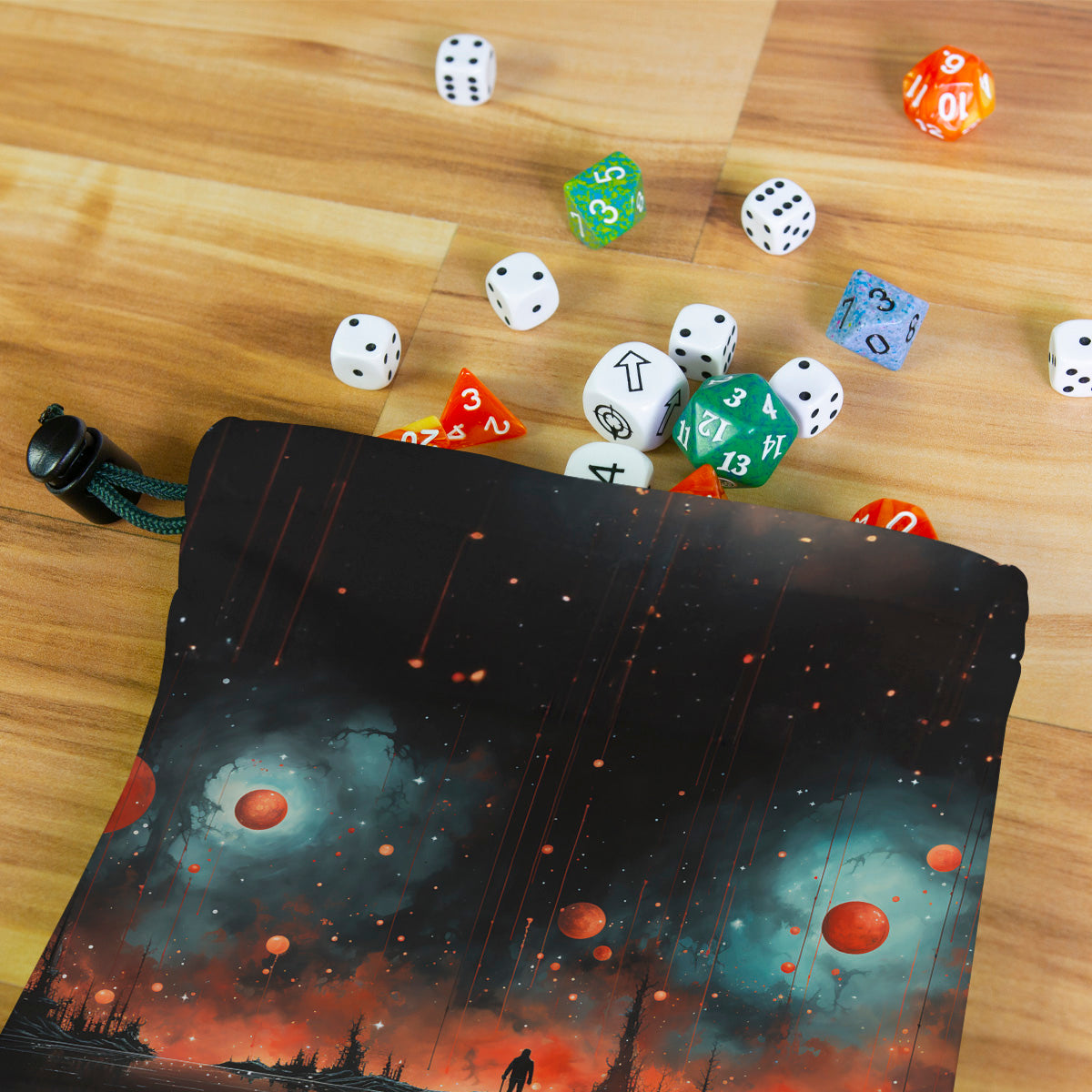 KnerdedAlways gaming on the go? Carry everything you need and more using our specially crafted dice bag. But this bag is designed to hold more than just dice. We make it so you can carry other essential accessories and gear with your dice, including deck boxes, life counters, extra sleeves, and pens. Quality is just as important as quantity, which is why our dice bags are crafted using premium material as well. Featuring a soft inner lining and microfiber on the inside and vibrant pre-designed artwork on the outside, our dice bag has an amazing look and feel to it!