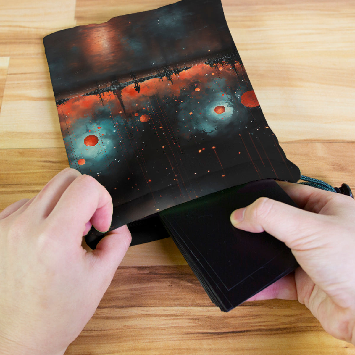 Always gaming on the go? Carry everything you need and more using our specially crafted dice bag. But this bag is designed to hold more than just dice. We make it so you can carry other essential accessories and gear with your dice, including deck boxes, life counters, extra sleeves, and pens. Quality is just as important as quantity, which is why our dice bags are crafted using premium material as well. Featuring a soft inner lining and microfiber on the inside and vibrant pre-designed artwork on the outside, our dice bag has an amazing look and feel to it!