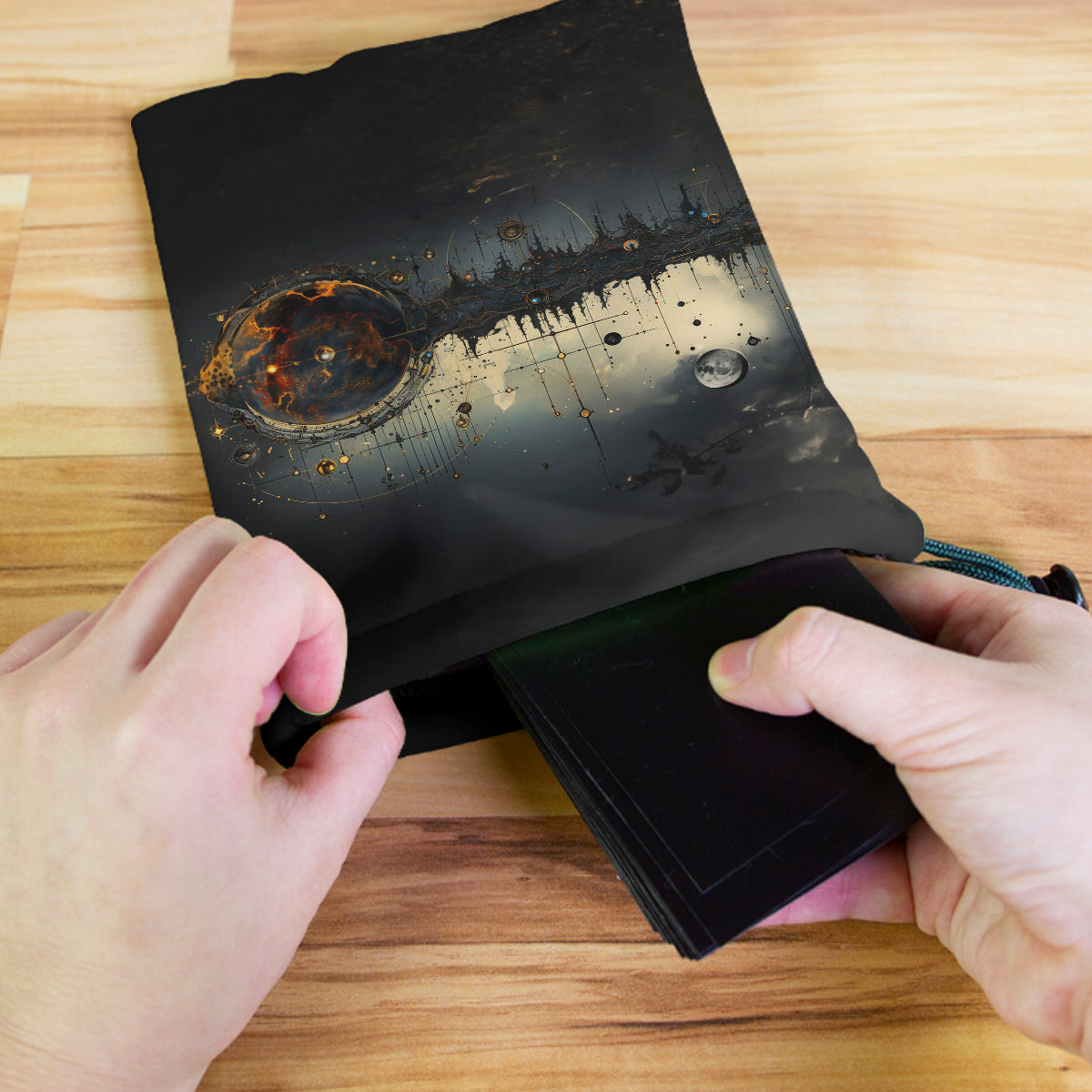 Always gaming on the go? Carry everything you need and more using our specially crafted dice bag. But this bag is designed to hold more than just dice. We make it so you can carry other essential accessories and gear with your dice, including deck boxes, life counters, extra sleeves, and pens. Quality is just as important as quantity, which is why our dice bags are crafted using premium material as well. Featuring a soft inner lining and microfiber on the inside and vibrant pre-designed artwork on the outside, our dice bag has an amazing look and feel to it!