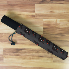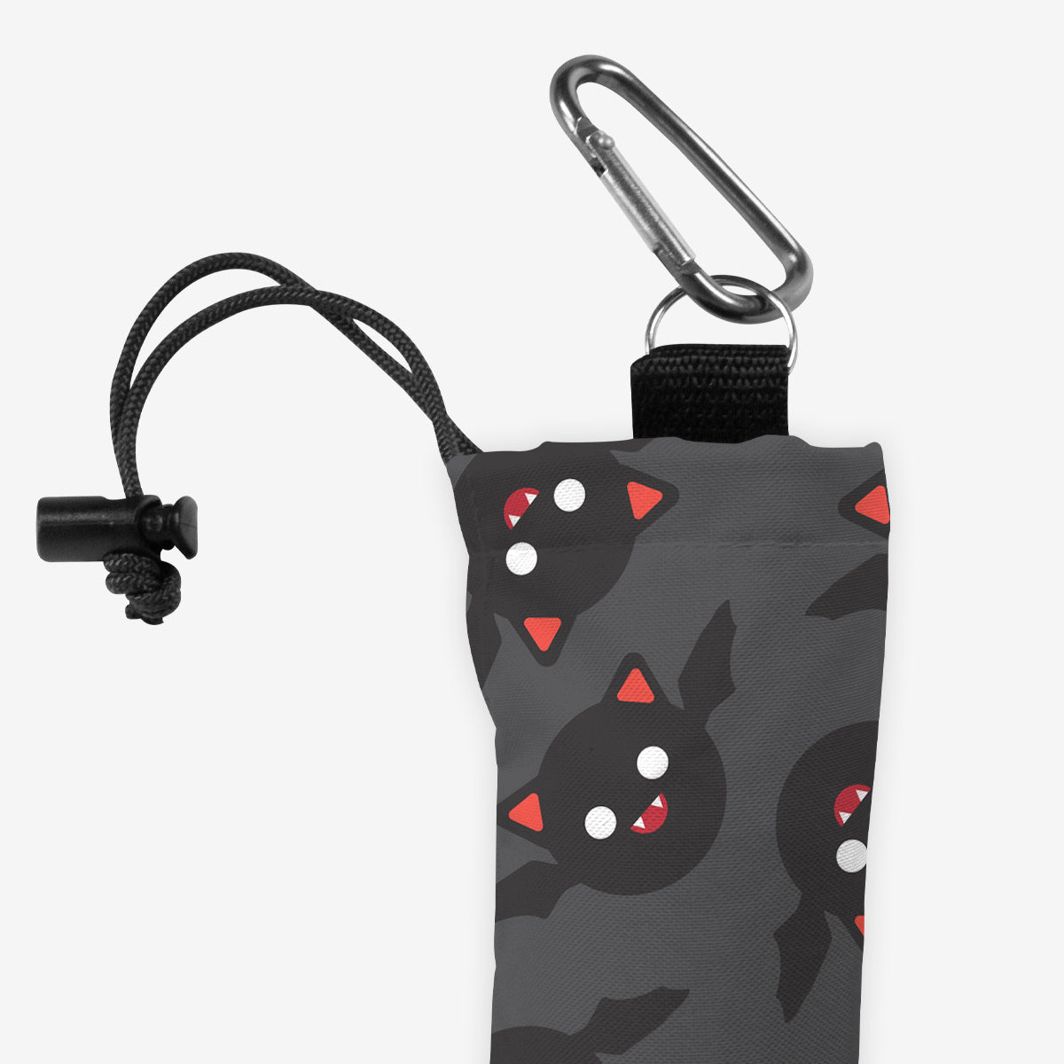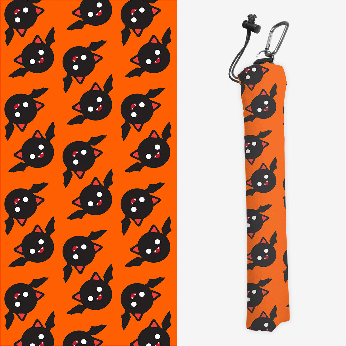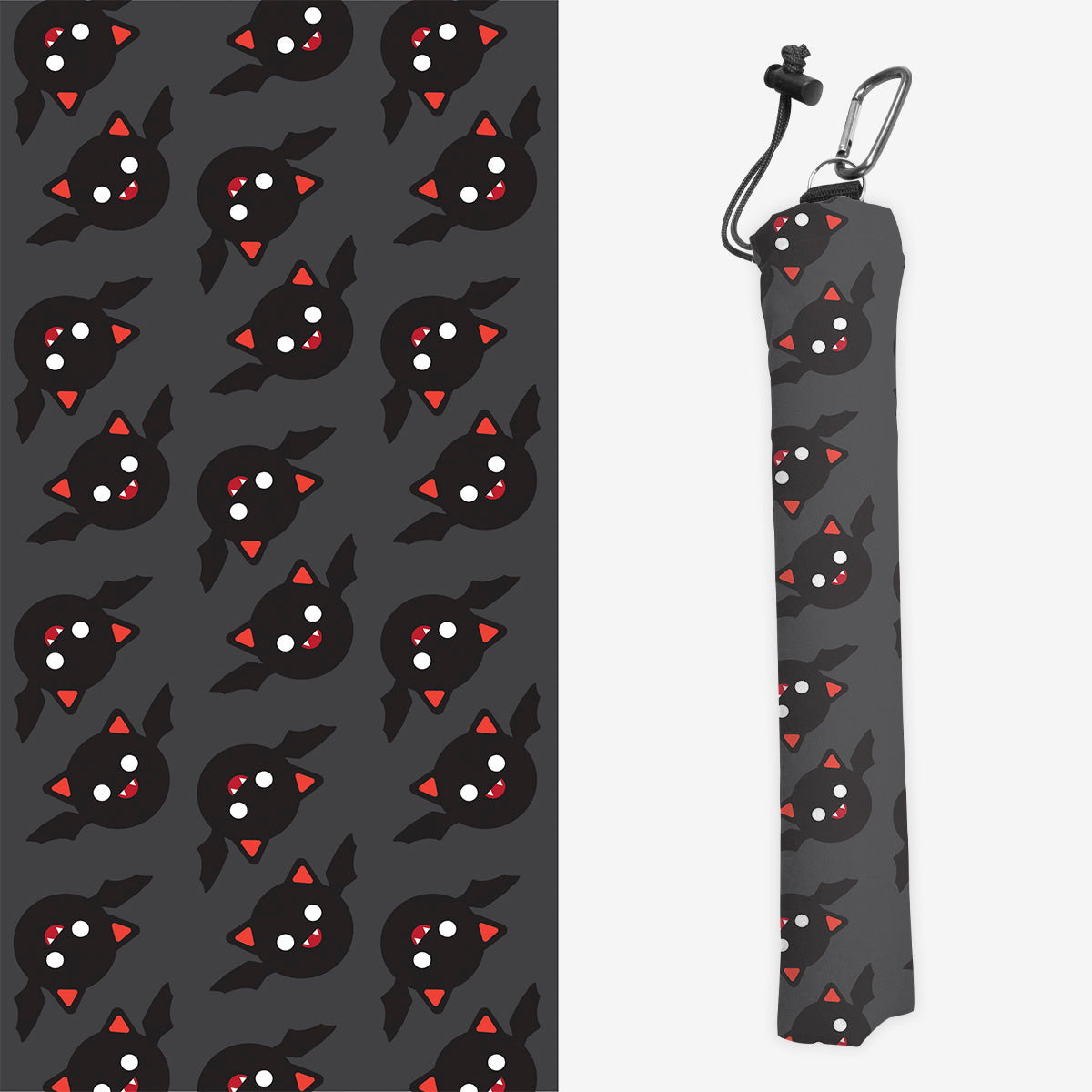 Playmat Bags are specifically designed to hold your mats in style. They are large enough to carry up to two mats. They are coated to be water resistant and include a strap with carabiner for carrying on your backpack. Our bags are hand made in house, and to order. A design that is vertical or patterned would be best for this type of product.