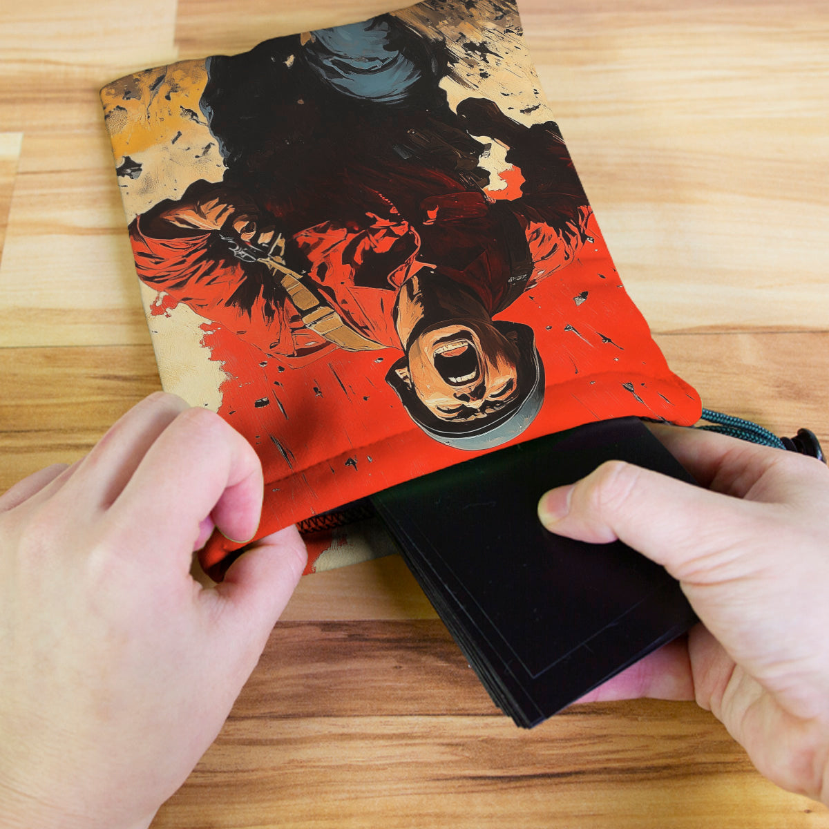 Always gaming on the go? Carry everything you need and more using our specially crafted dice bag. But this bag is designed to hold more than just dice. We make it so you can carry other essential accessories and gear with your dice, including deck boxes, life counters, extra sleeves, and pens. Quality is just as important as quantity, which is why our dice bags are crafted using premium material as well. Featuring a soft inner lining and microfiber on the inside and vibrant pre-designed artwork on the outside, our dice bag has an amazing look and feel to it!