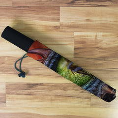 Keep your playmat in pristine condition wherever you go with one of our handcrafted playmat bags. This playmat bag is specifically designed to protect your playmat and can hold two standard sized mats at the same time (in case you need a backup or your friend forgets theirs). Each bag is made in-house and features a water-resistant coating along with a drawstring and carabiner clip for secure carrying. So you can take your game anywhere and in any weather.