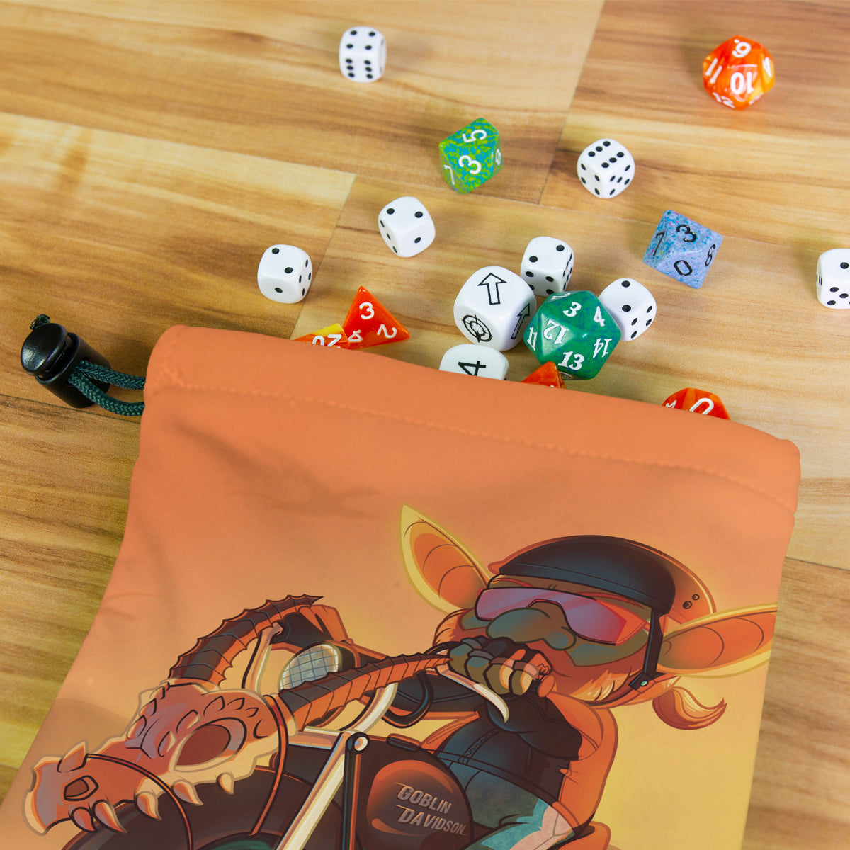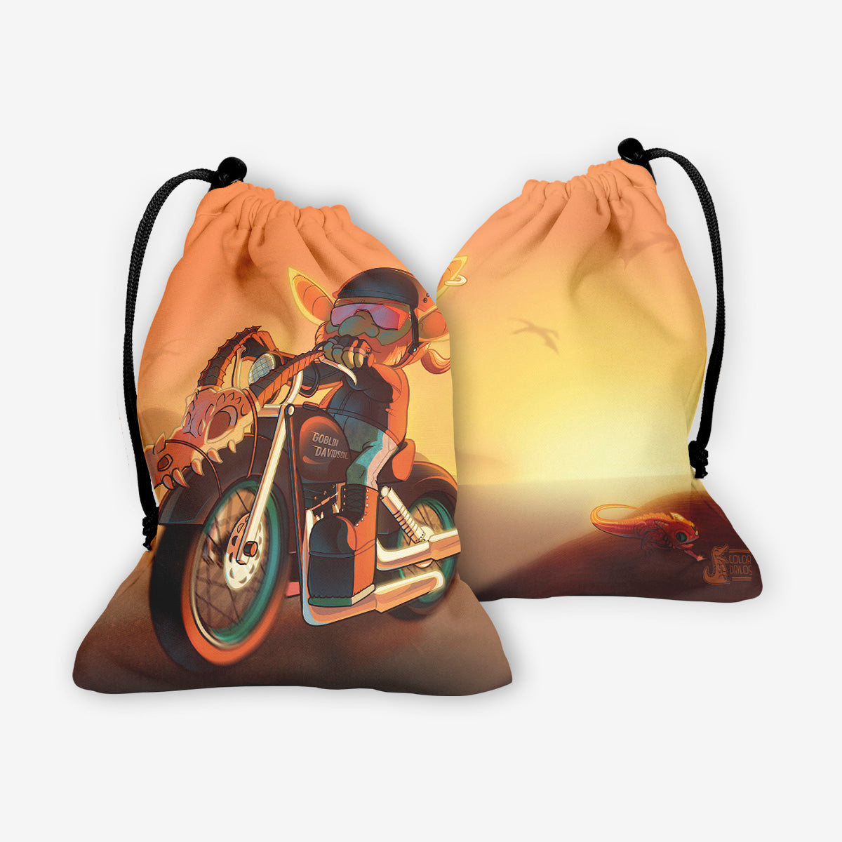 ColordrilosReady to roll with one of the coolest dice bags out there? Mount up with Colordrilos’ Biker Goblin! We make our dice bags in-house with a soft microfiber and smooth inner lining that both looks and feels great to carry. And with a sturdy, spacious design, our dice bags are capable of carrying more than just dice. Sleeves, deck boxes, life counters, extra tokens and a whole lot more can be fit into this handy little bag, which makes it ideal for those who are constantly taking their game on the road!