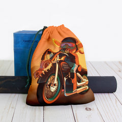 Ready to roll with one of the coolest dice bags out there? Mount up with Colordrilos’ Biker Goblin! We make our dice bags in-house with a soft microfiber and smooth inner lining that both looks and feels great to carry. And with a sturdy, spacious design, our dice bags are capable of carrying more than just dice. Sleeves, deck boxes, life counters, extra tokens and a whole lot more can be fit into this handy little bag, which makes it ideal for those who are constantly taking their game on the road!