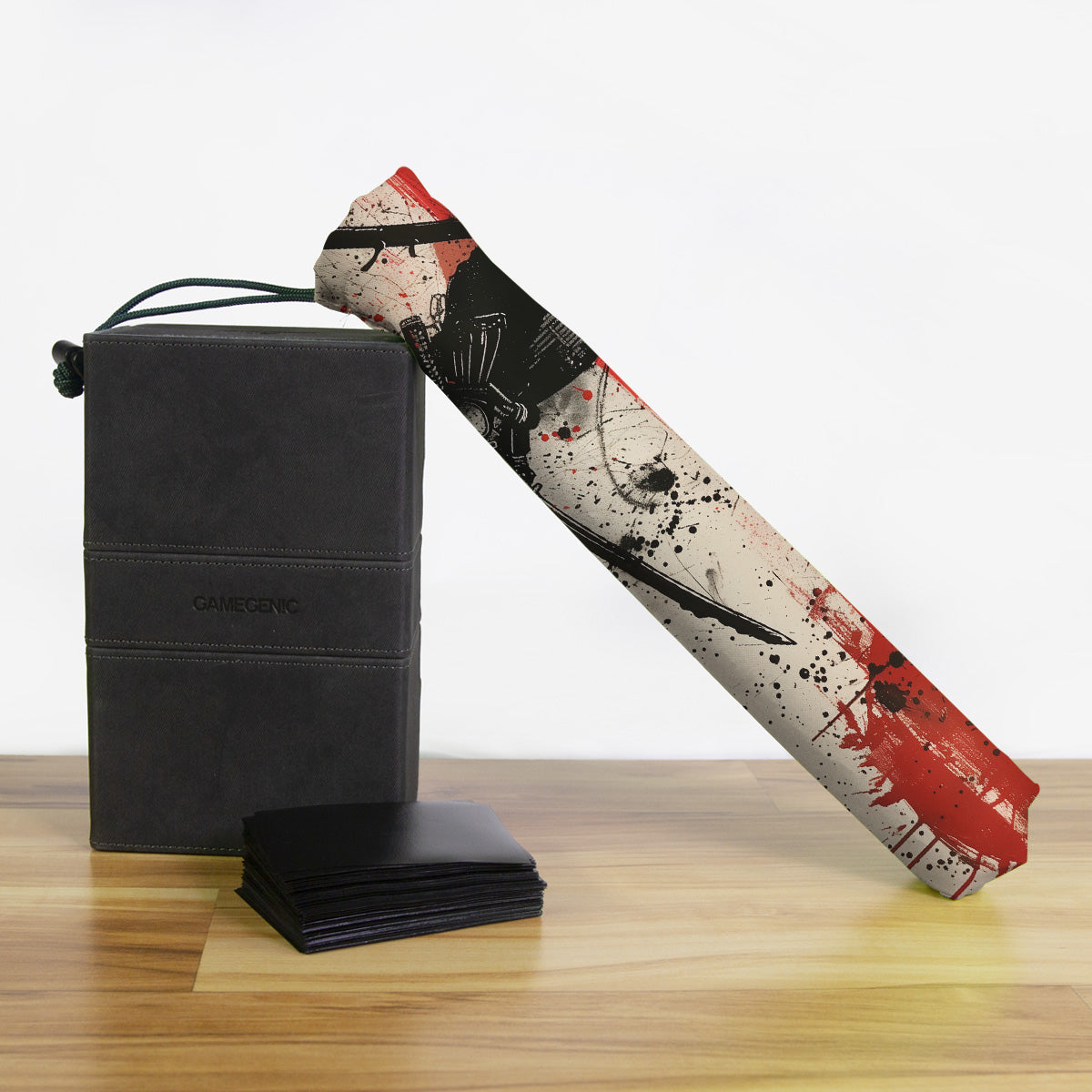 Keep your playmat in pristine condition wherever you go with one of our handcrafted playmat bags. This playmat bag is specifically designed to protect your playmat and can hold two standard sized mats at the same time (in case you need a backup or your friend forgets theirs). Each bag is made in-house and features a water-resistant coating along with a drawstring and carabiner clip for secure carrying. So you can take your game anywhere and in any weather.